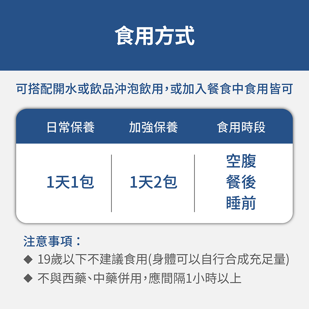 ➤每日1包,任一時間食用