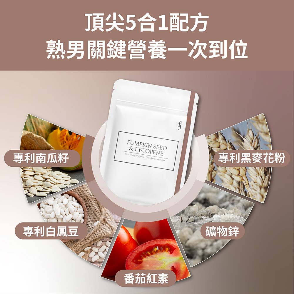 【FJ豐傑生醫】專利南瓜籽+茄紅素-30顆/袋(熟齡男性調整體質x幫助調節生理機能)