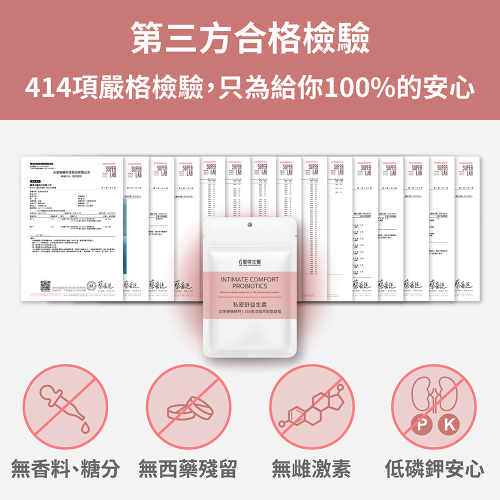 私密舒益生菌不含任何西藥以及賀爾蒙成份,生理期以及更年期皆可安心食用喔!