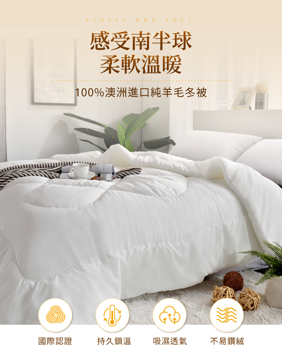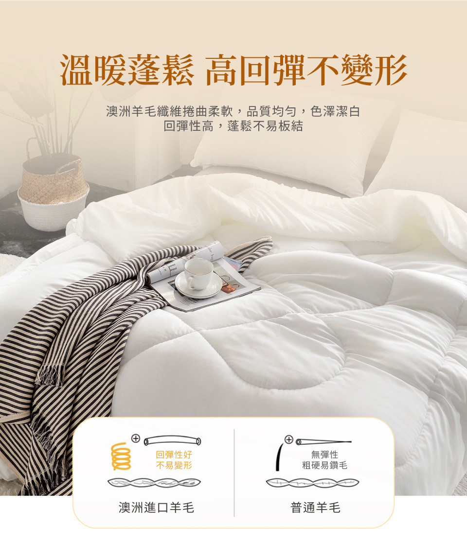 ☆國際認證100%純羊毛被 MIT台灣製造 品質保證☆吸濕透氣,蓬鬆回彈,柔軟服貼☆持久儲溫保暖,細緻包邊工藝,享受睡眠