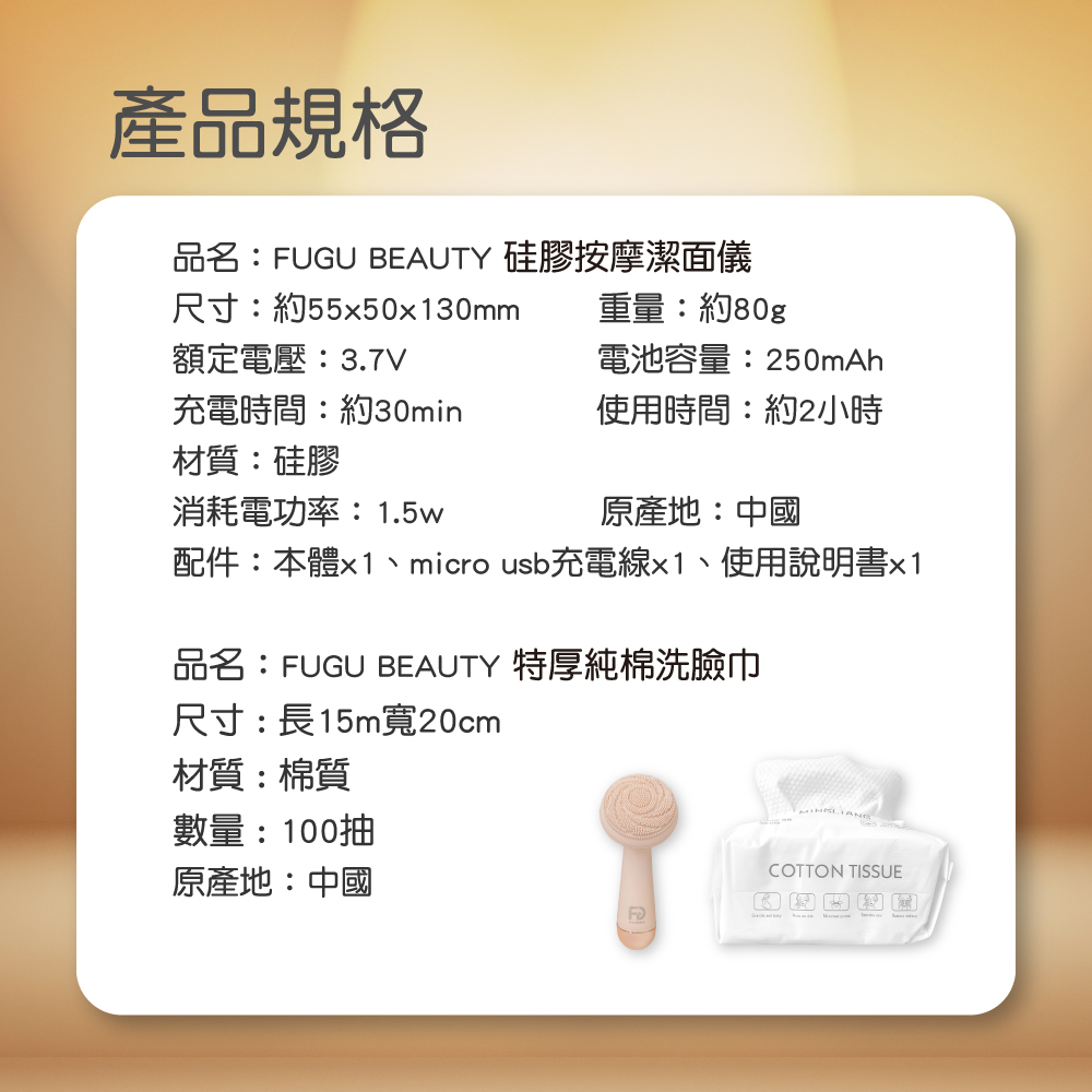 【FUGU】硅膠按摩潔面儀 贈洗臉巾/洗臉儀 卸妝巾