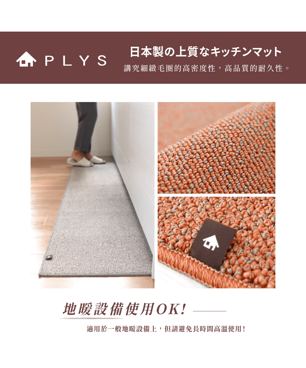 【PLYS】日本製廚房長條地墊45×240cm 茶橙色(吸水防滑設計/厚度6mm/可機洗)