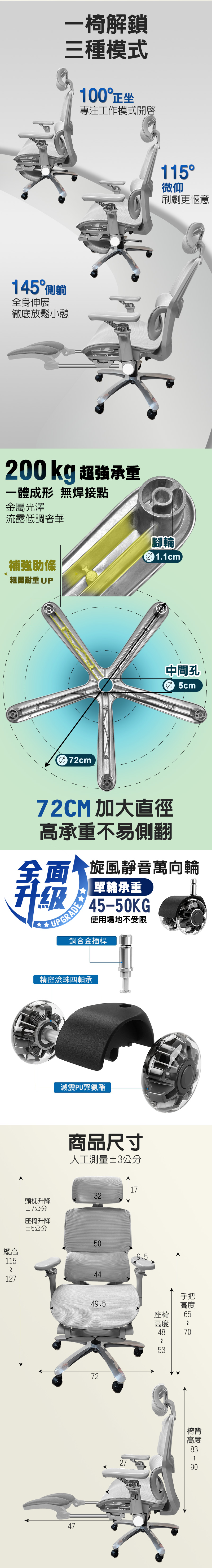 材質:座椅-彈性透氣網布、框架-塑膠、 腳架-70公分鋁合金