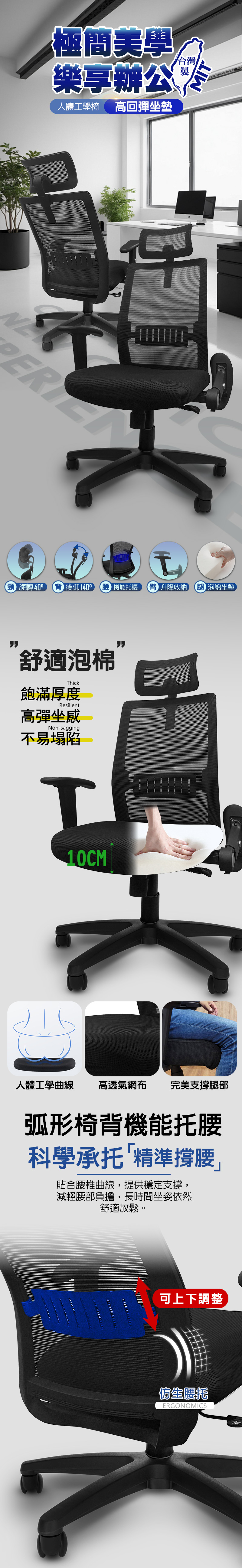 【G+居家】免組裝 台灣製造人體工學4D透氣椅C6828