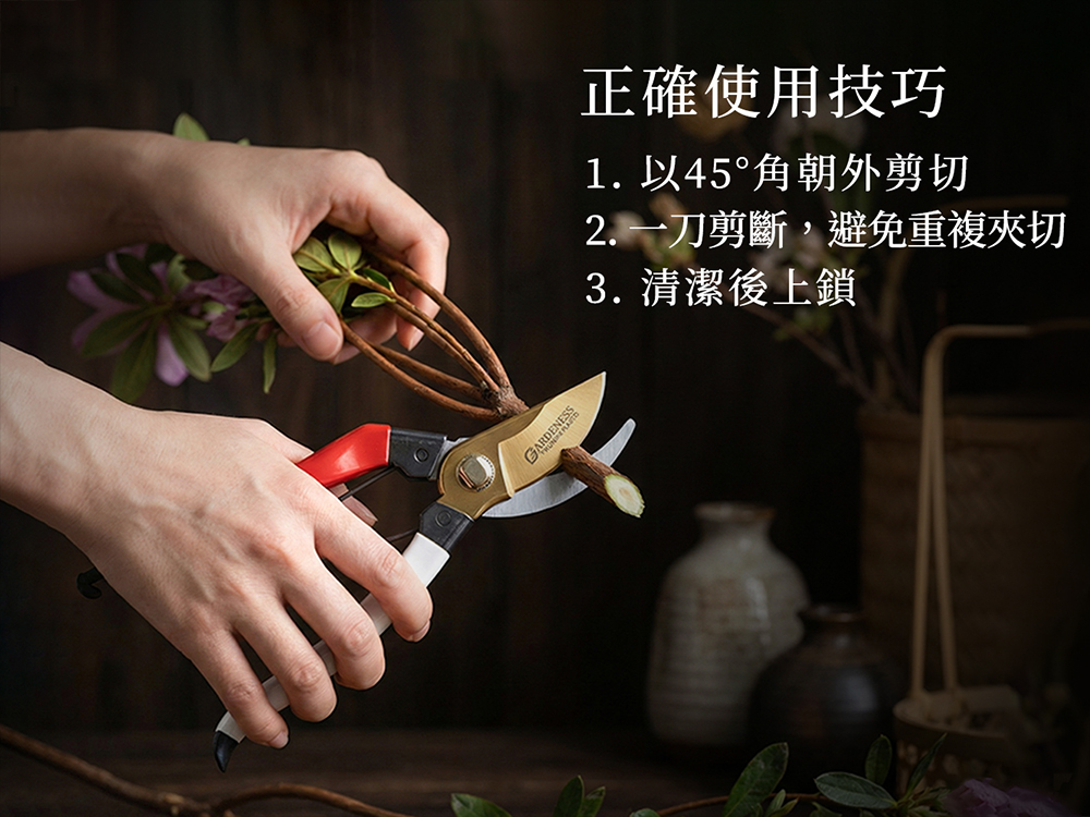 雙面研磨工藝: 上刀刃經過精細的雙面研磨處理,確保切口平整不傷花梗與嫩枝。