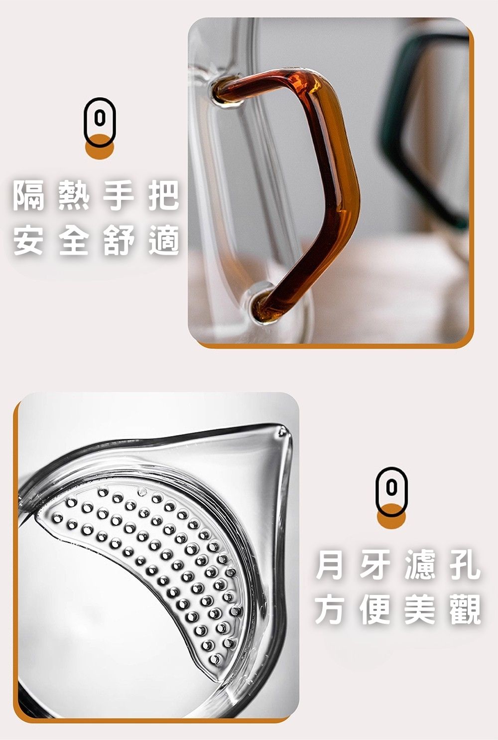 以高硼硅玻璃手工吹製,可承受冷熱溫差,透明壺身讓茶湯色澤一覽無遺,視覺與味覺共賞