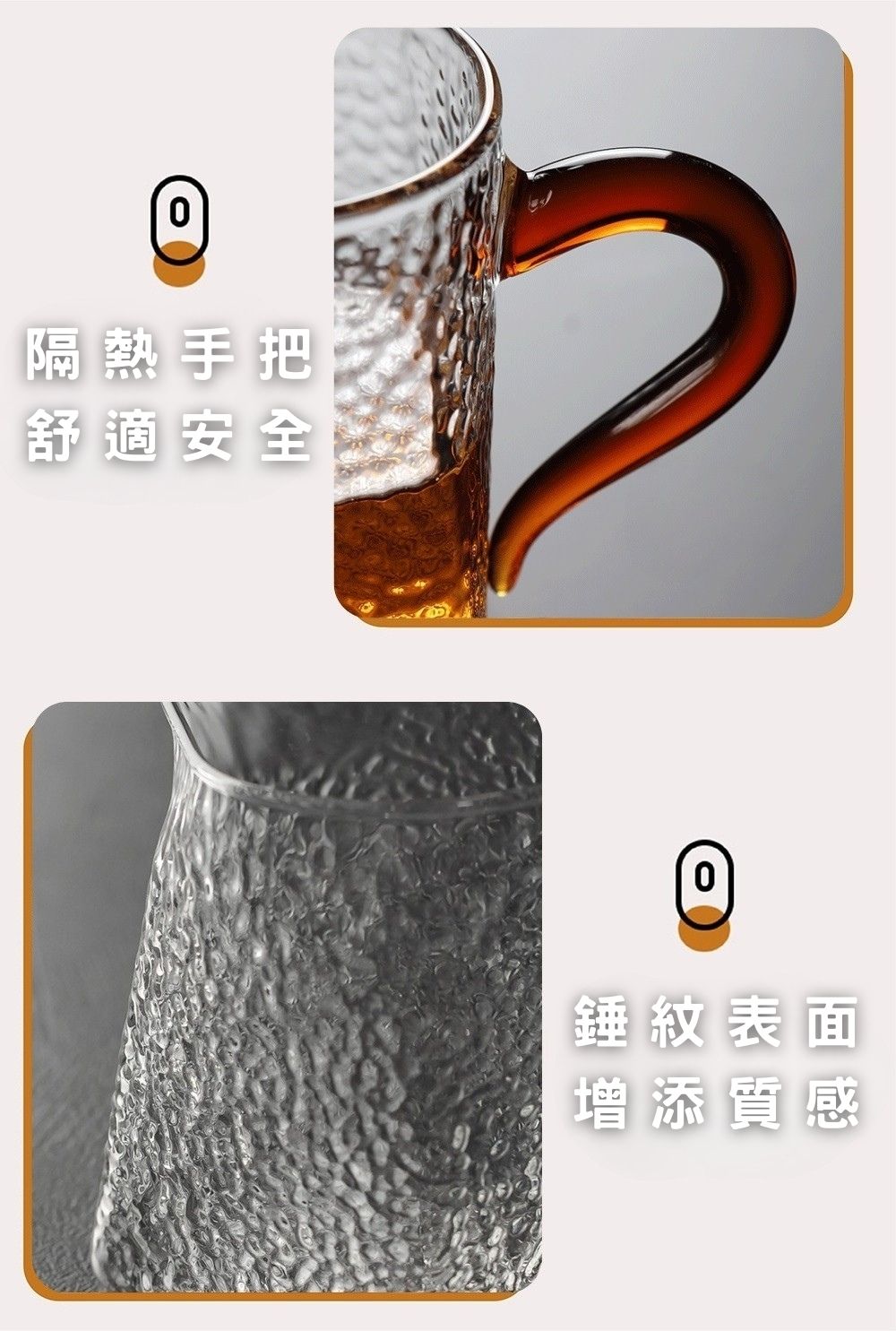 杯身佈滿細緻的錘目紋理,能在光線下呈現漂亮的折射效果,質感細膩又有手作感