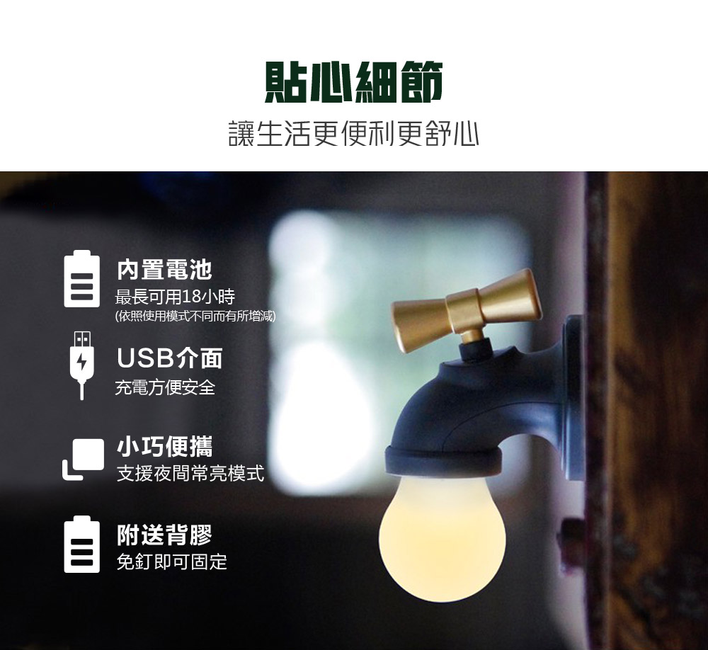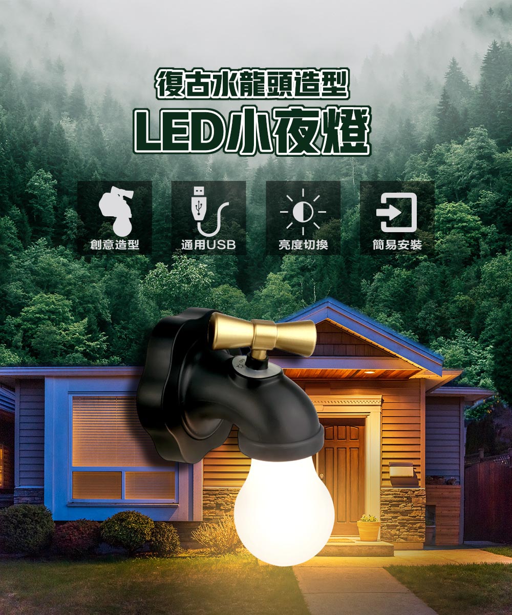【Glolux 北美品牌】復古水龍頭造型小夜燈/壁燈