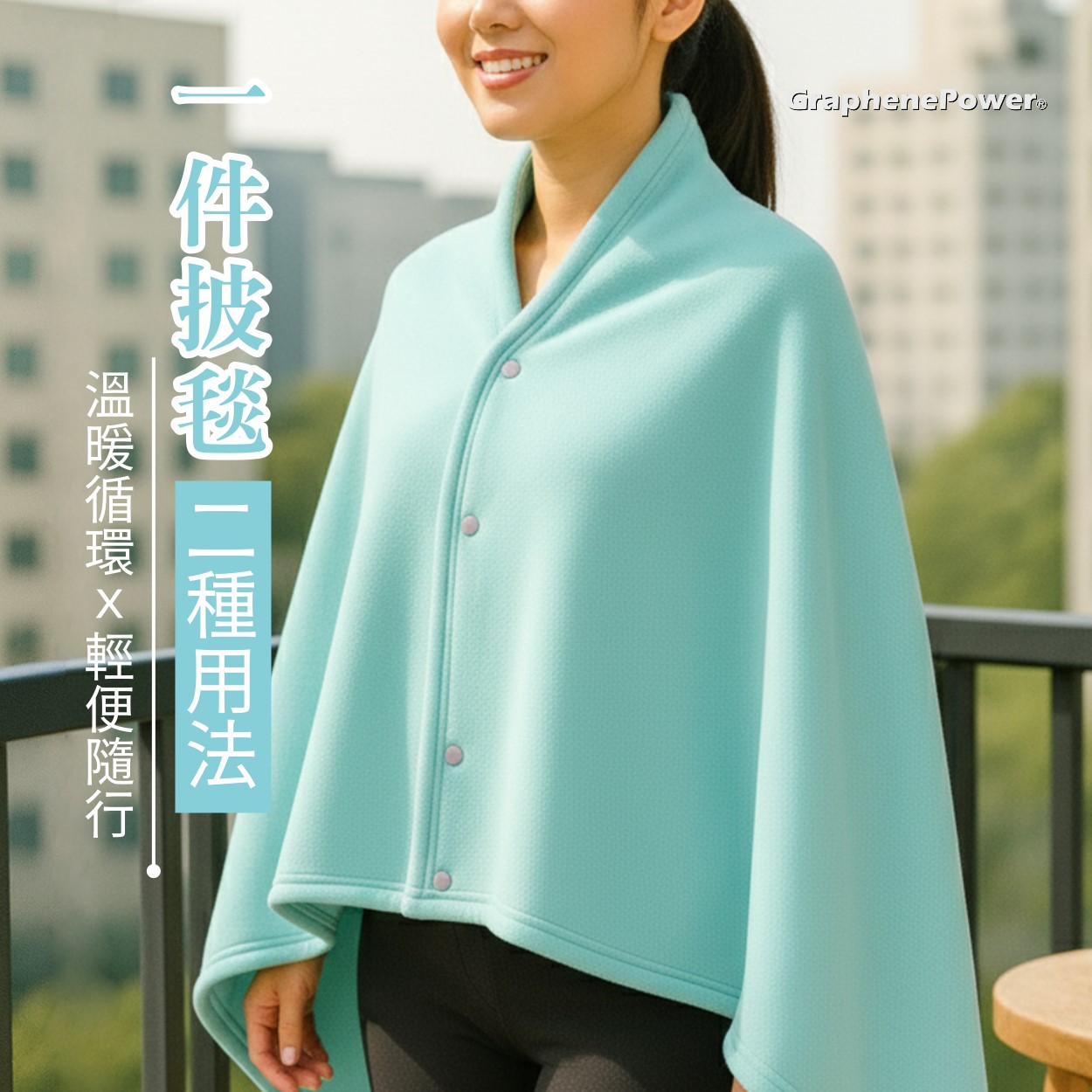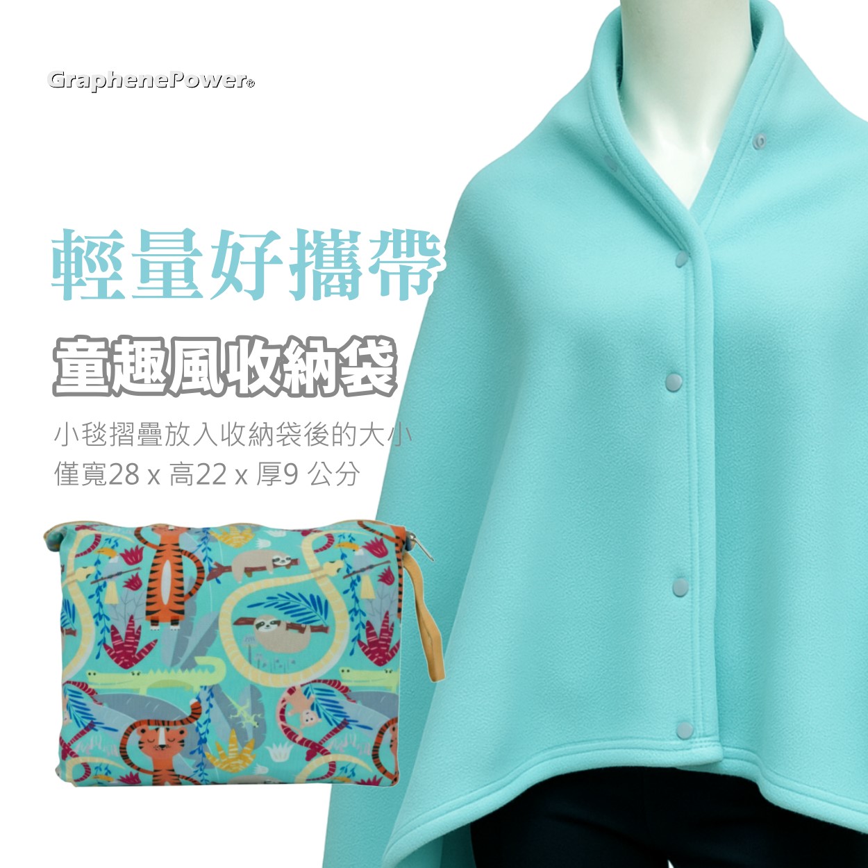 [GraphenePower] 石墨烯輕便兩用披肩毯(附收納袋) - 水綠