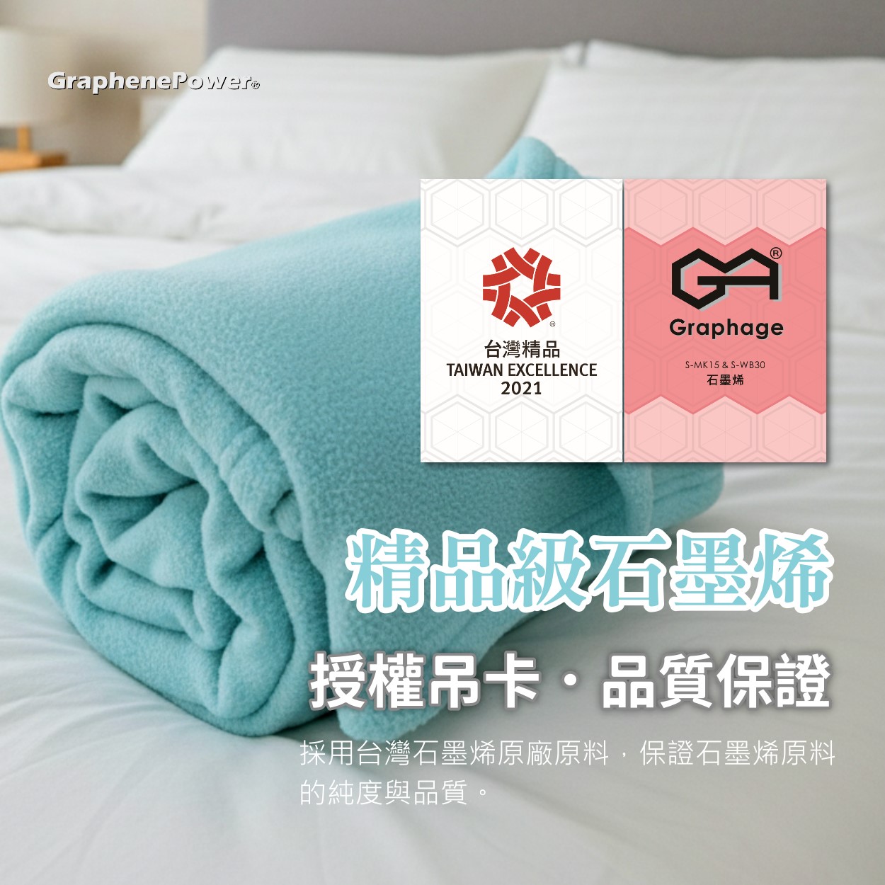 【材質】披肩毯 - 100% 聚酯纖維 (內含20%石墨烯複合紗)