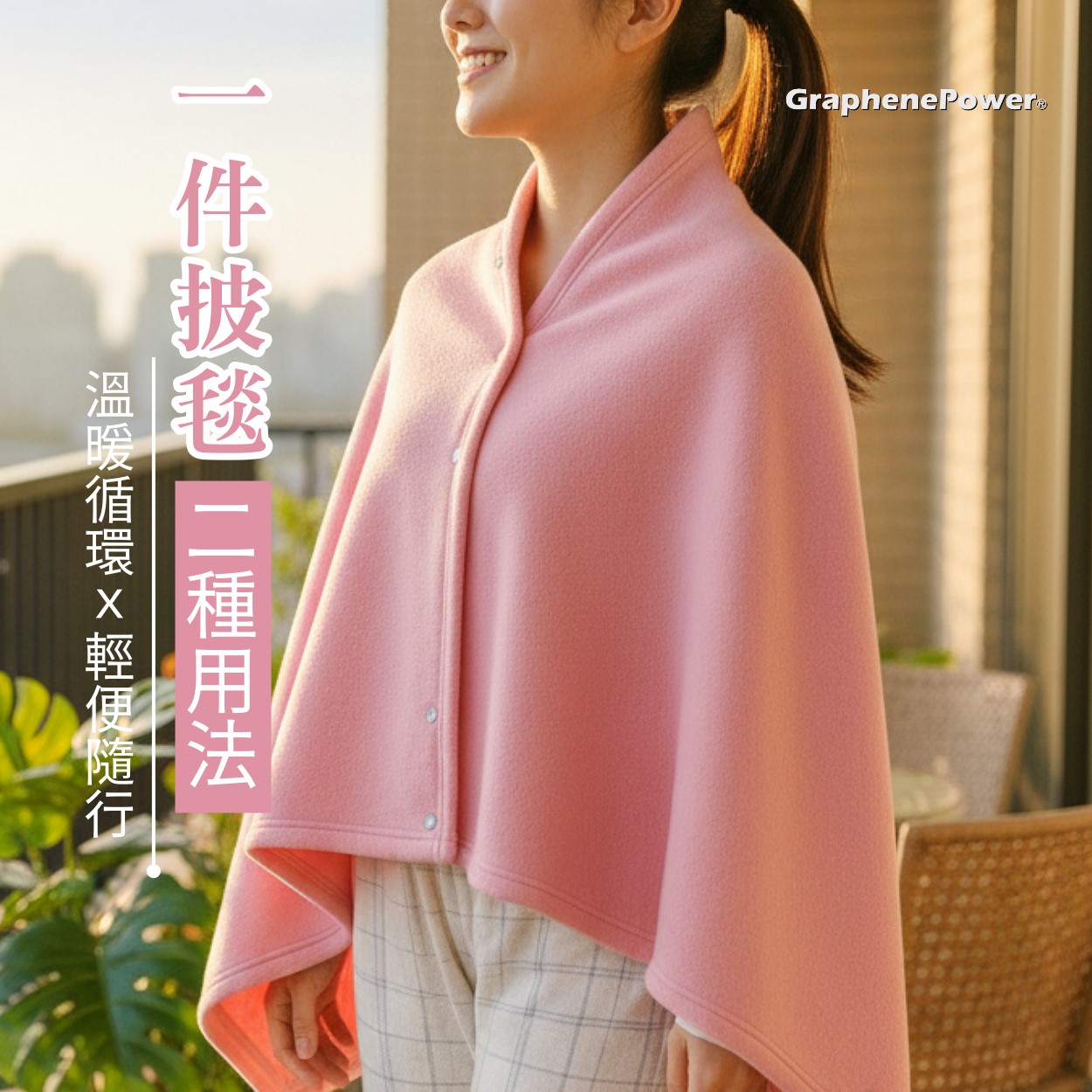 [GraphenePower] 石墨烯輕便兩用披肩毯(附收納袋) - 粉紅