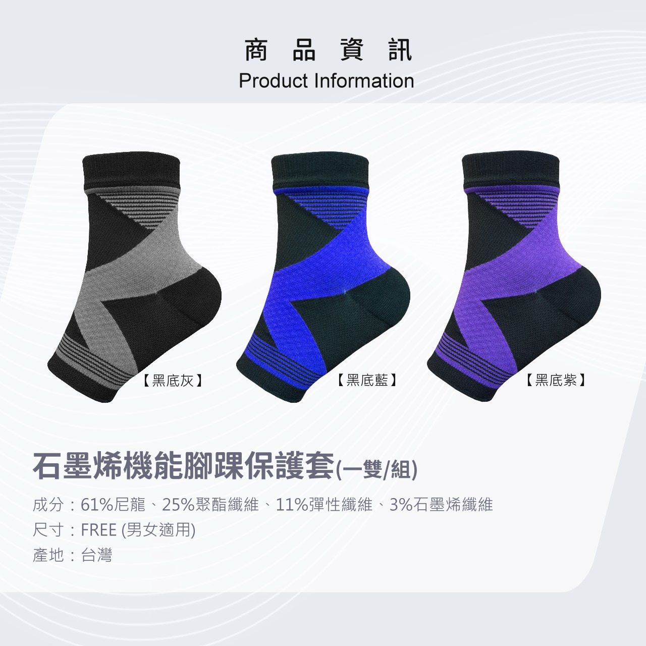 [GraphenePower] 石墨烯機能腳踝保護套/護踝套(一雙入) - 黑底紫