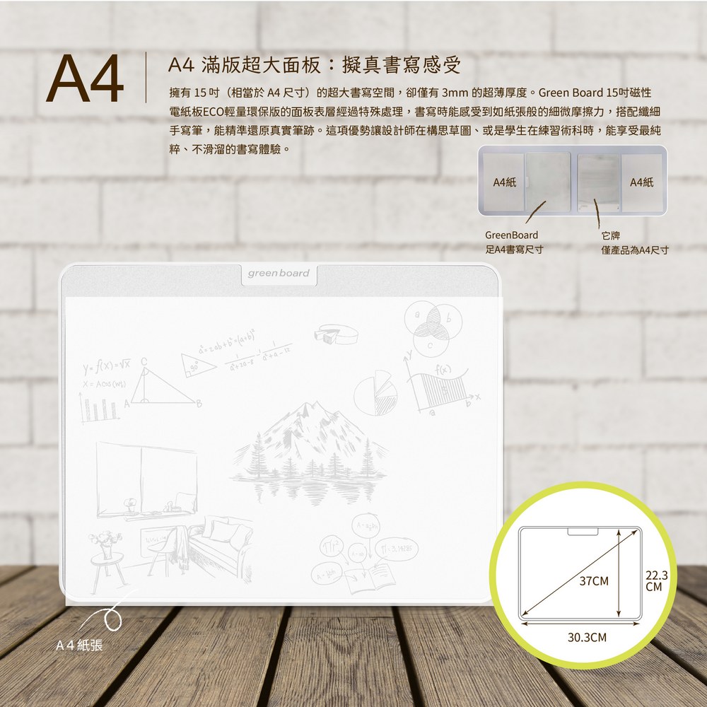 Green Board 15吋磁性電紙板 SP15 ECO 局部擦除 終身免電池 A4無紙化電子白板 無塵室專用書寫板 電子紙手寫板推薦