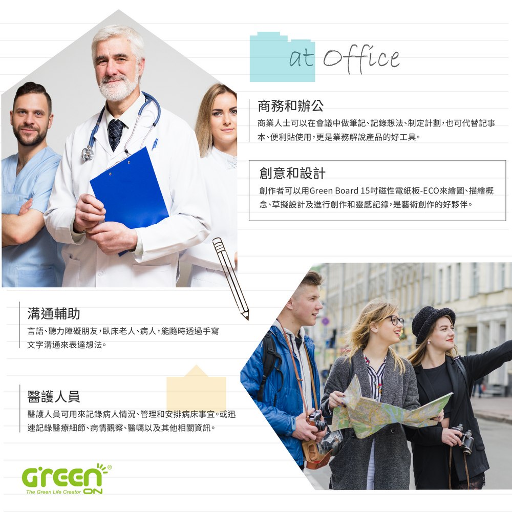 創意和設計:創作者可以用Green Board 15吋磁性手寫板來繪圖、描繪概念、草擬設計及進行創作和 靈感記錄,是藝術創作的好夥伴。