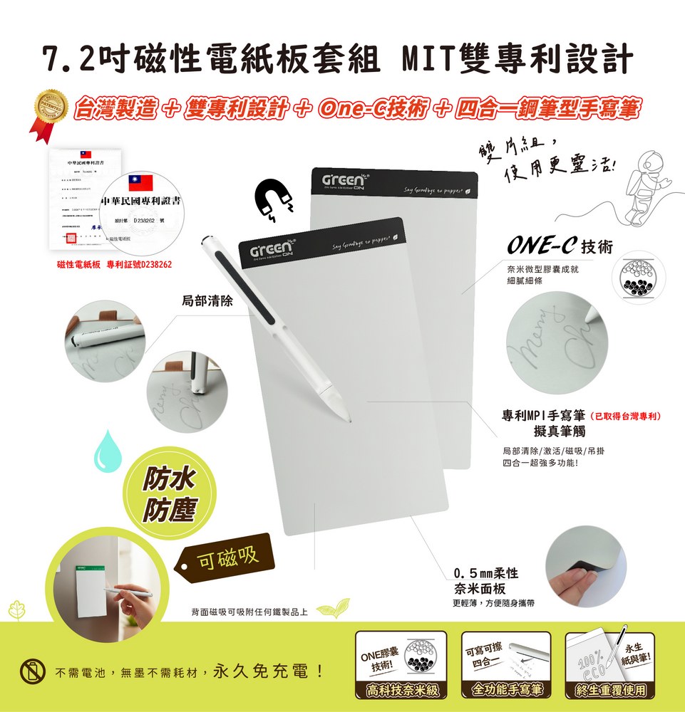 產品名稱: Green Board 7.2吋磁性電紙板套組