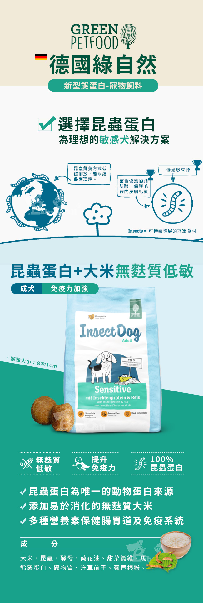 【倆寶貝精品館】Green Petfood德國綠自然 昆蟲蛋白+大米 無麩質低敏成犬飼料900g