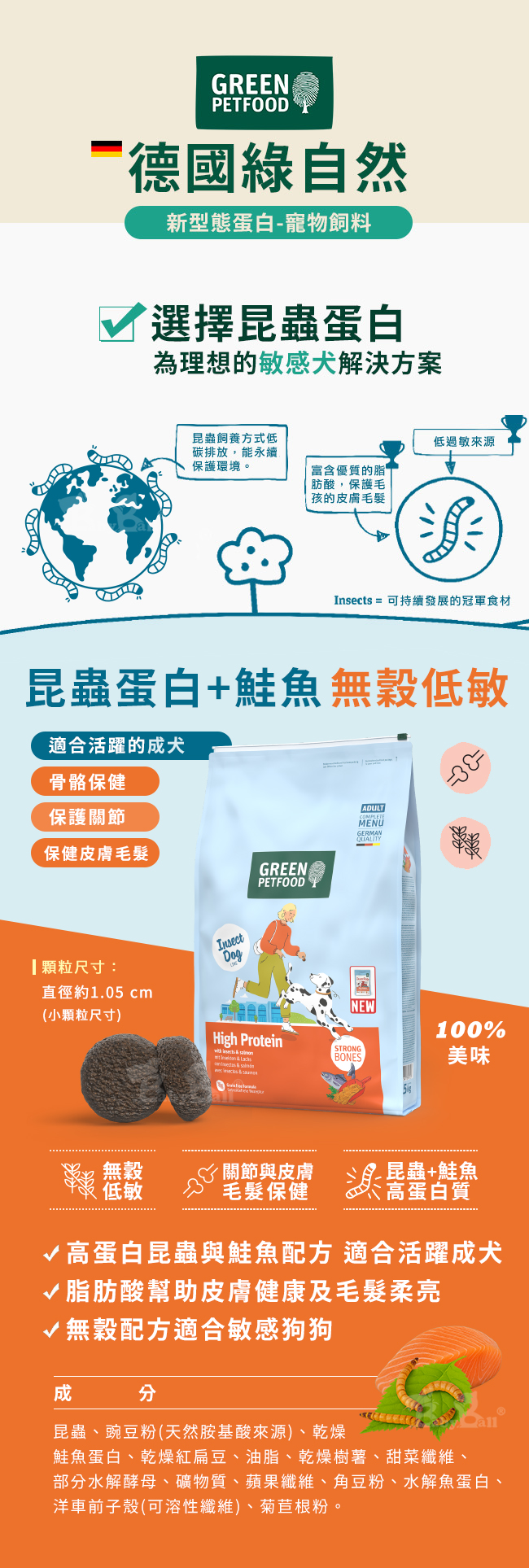 【倆寶貝精品館】Green Petfood 德國綠自然 昆蟲蛋白+鮭魚 無穀低敏成犬飼料7.5KG