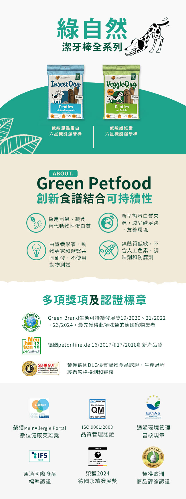 【倆寶貝精品館】Green Petfood德國綠自然 低敏昆蟲蛋白六星機能潔牙棒180gx2入《效期2026/06/19》