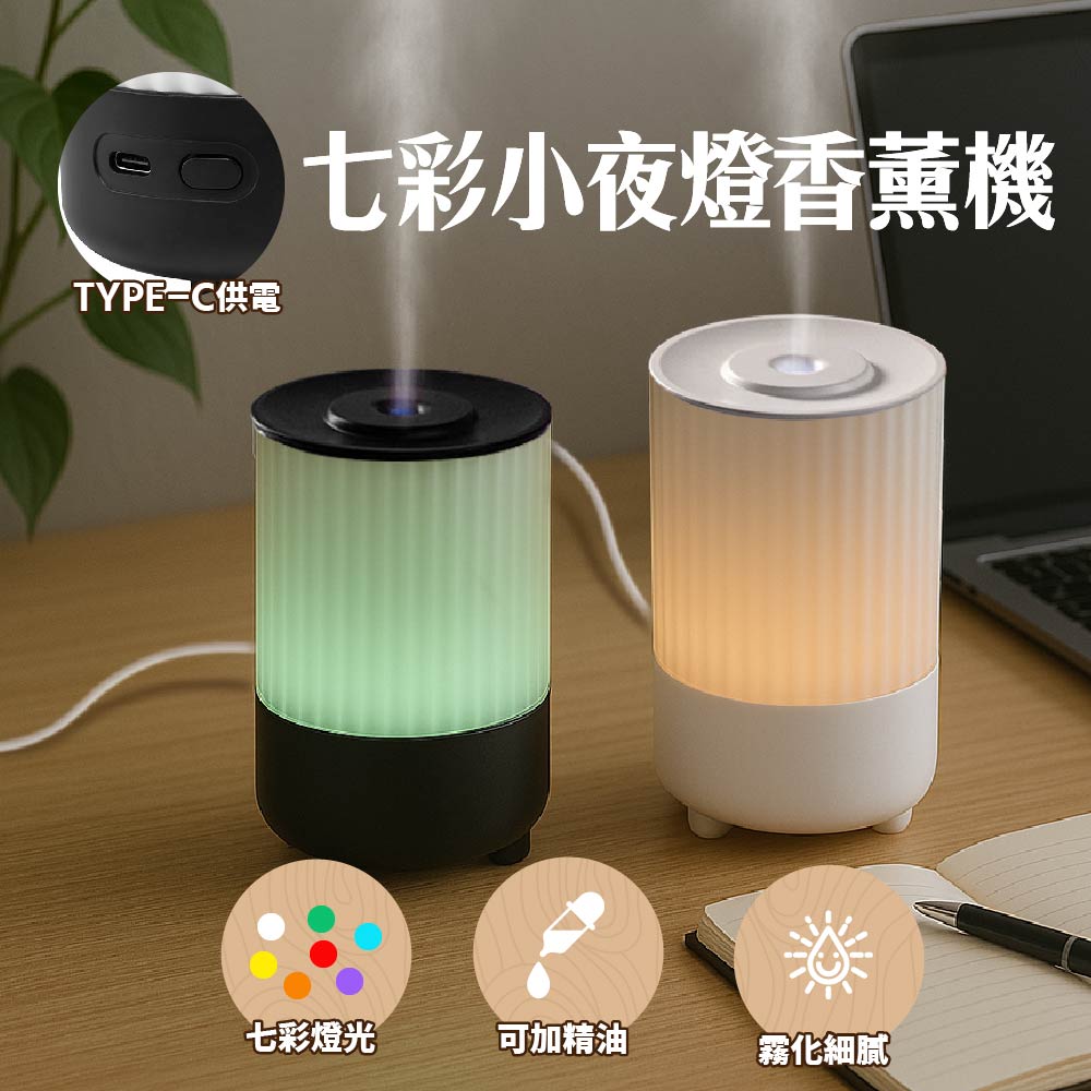 七彩小夜燈香薰機 奈米霧化加濕器 靜音加濕 不凝水珠香氛機