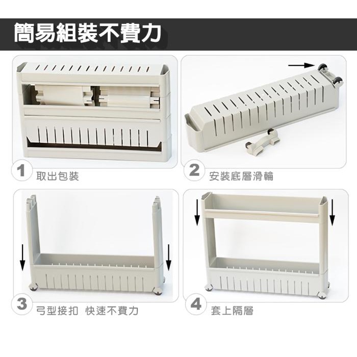●12.5CM四層隙縫收納架●移動拉取時也不會碰撞搖晃●專為隙縫處設計,有效利用空間●省力滑輪設計,可輕鬆拖出隙縫架影片/圖片未經授權嚴禁轉載,翻拍/轉載必究。GS00028【產品規格】材 質:PP材質產品尺寸:55x12.5x90cm(組裝後)包裝尺寸:58x15x36cm重 量:2KG產 地:台灣【注意事項】※ 商品退貨,請保持原樣貌※ 僅限新品瑕疵退換貨(猶豫期並非試用期)#三層隙縫收納架 #四層隙縫收納架 #隙縫收納架 #收納架 #隙縫架 #隙縫滾輪收納架 #三層收納架 #四層隙縫收納架 #滾輪收納架 #三層隙縫收納架 #四層隙縫收納架 #隙縫收納架 #收納架 #隙縫架 #隙縫滾輪收納架