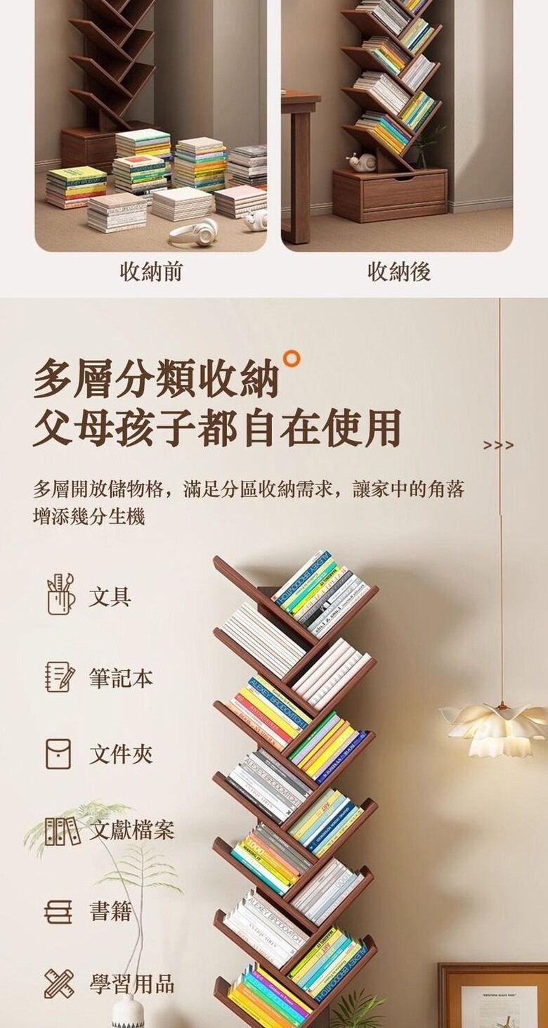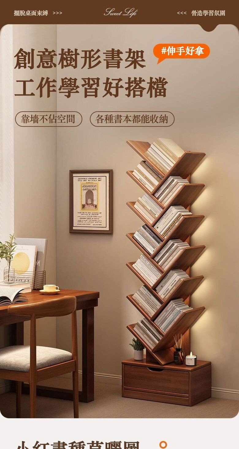 🌲【小空間救星|樹形直立書架】占地小 × 收納大|一本一本,替生活找回秩序專為台灣居家與租屋空間打造的立體收納方案🚀 向上收納設計,讓地面空間解放34cm 寬度輕巧好擺放,利用垂直高度增加收納層次,牆角、沙發旁、書桌邊都能輕鬆放置。📌 租屋族首選📌 不佔走道、不擋動線📚 樹枝式層架配置|分類清楚、好拿不亂書本依高度與大小自然分層擺放,不再堆疊、不易倒落,閱讀、取書都更直覺。✔ 學生 / 上班族 / 親子家庭都適用✔ 書籍、資料夾、收藏一次搞定🪵 雪鬆木質感|耐看不退流行溫潤木紋色系,即使不擺滿書,也能成為空間中的自然裝飾。📌 不浮誇、不搶戲📌 久看也不膩的經典款🌟 為什麼這款樹形書架這麼受歡迎?✔ 小體積,大容量✔ 結構穩定,書多也安心✔ 書架+展示架雙用途✔ 風格百搭,不挑空間✔ 一人也能輕鬆使用📌 產品規格一次看懂款式選擇:煙霞雪鬆木嶼山雪鬆木尺寸規格:34 × 20 × 139 cm34 × 20 × 158 cm材質:雪鬆木紋板材設計:樹形立體層架適用:書籍 / 文件 / 擺飾 / 收納產地:PRC(中國台灣監製)