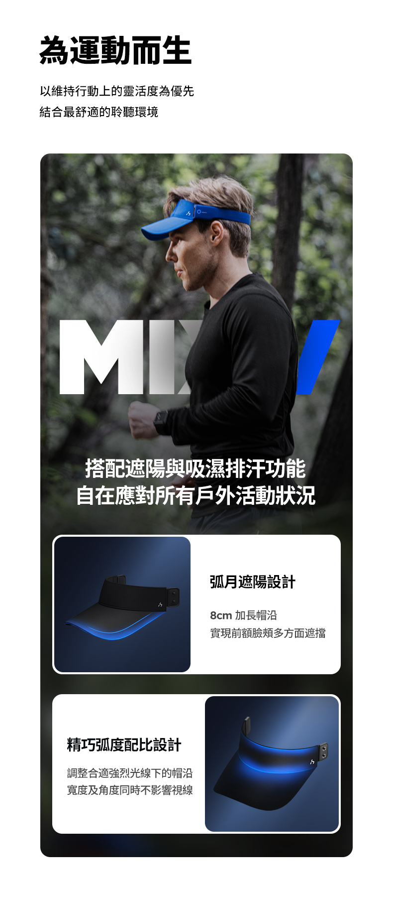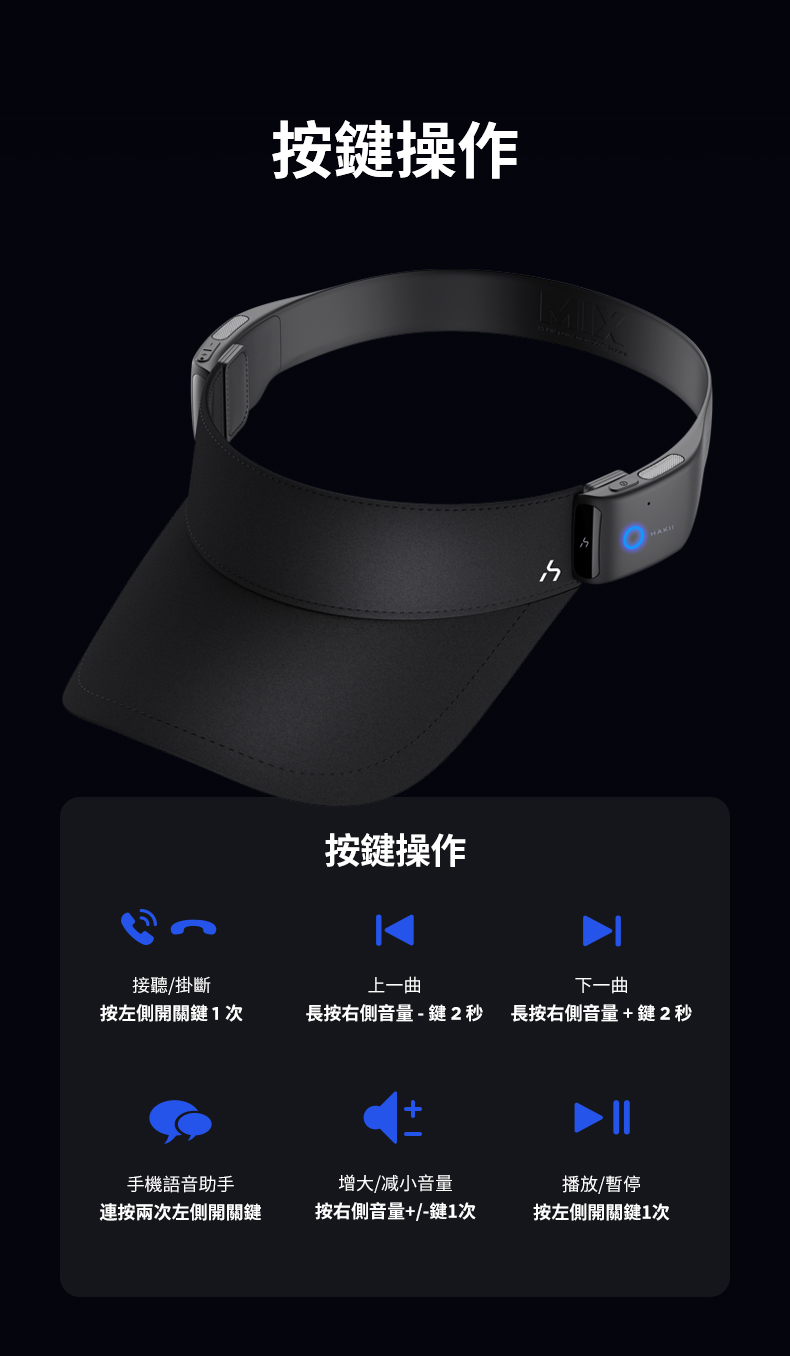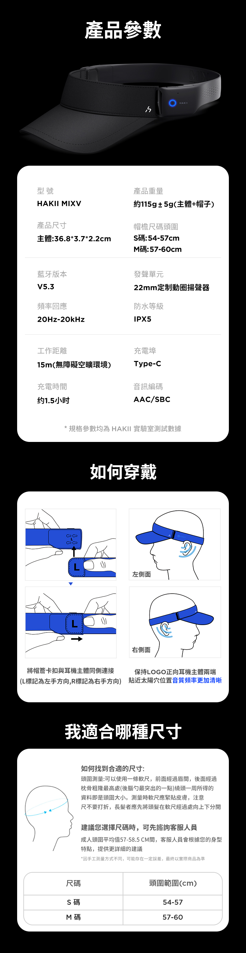 HAKII 哈氪MIX V穿戴式運動智慧耳機-帽簷款 黑色S (東城代理商公司貨)
