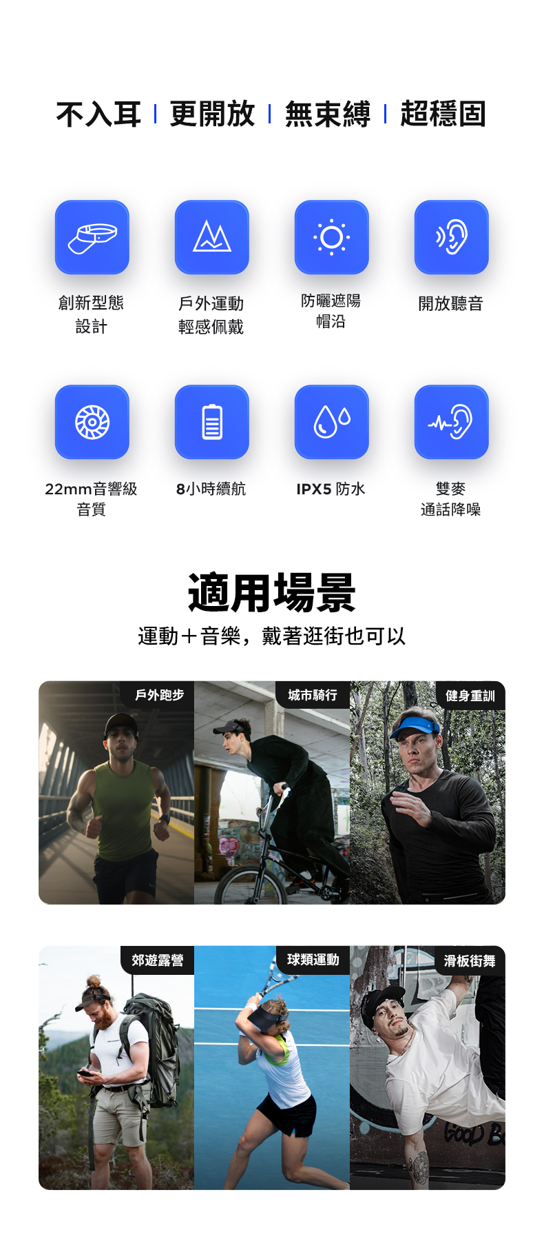 磁吸卡扣設計22mm大動圈,強化低頻IP5防水抗汗雙麥降噪通話8小時連續撥放音樂定向傳導結合聲導管平衡技術