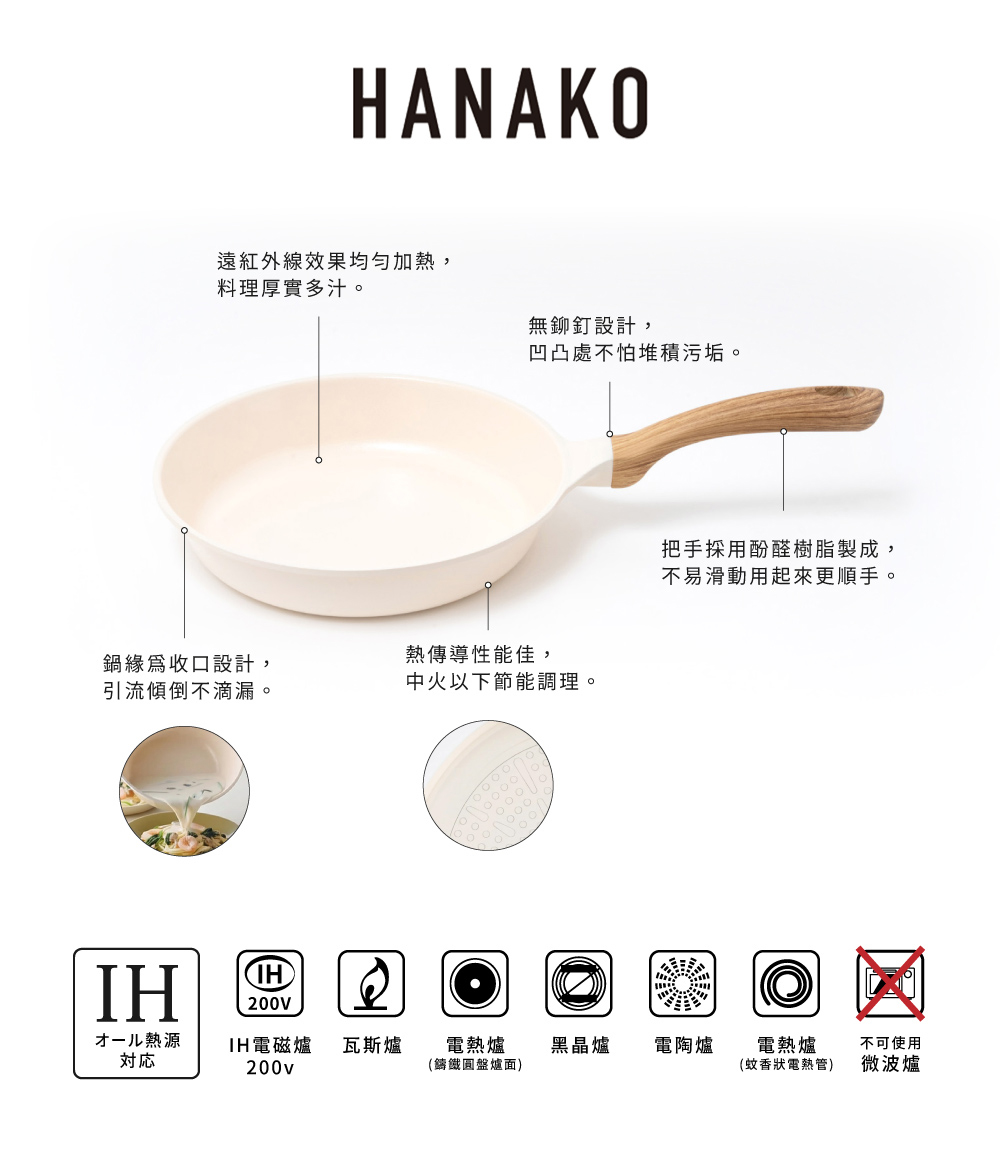 ■尺寸:寬25×全長45.5×高13.2cm、底部直徑15.2cm、深度7.9cm■重量:630g■材質:本體/鋁合金(內•外層:陶瓷不沾塗層加工)、鍋底外層/430不鏽鋼、把手/酚醛樹脂■耐熱溫度:把手180°C■適用於瓦斯爐、電熱爐、電陶爐、黑晶爐、電熱爐、200V IH爐■不適用於微波爐■日本企劃 越南製