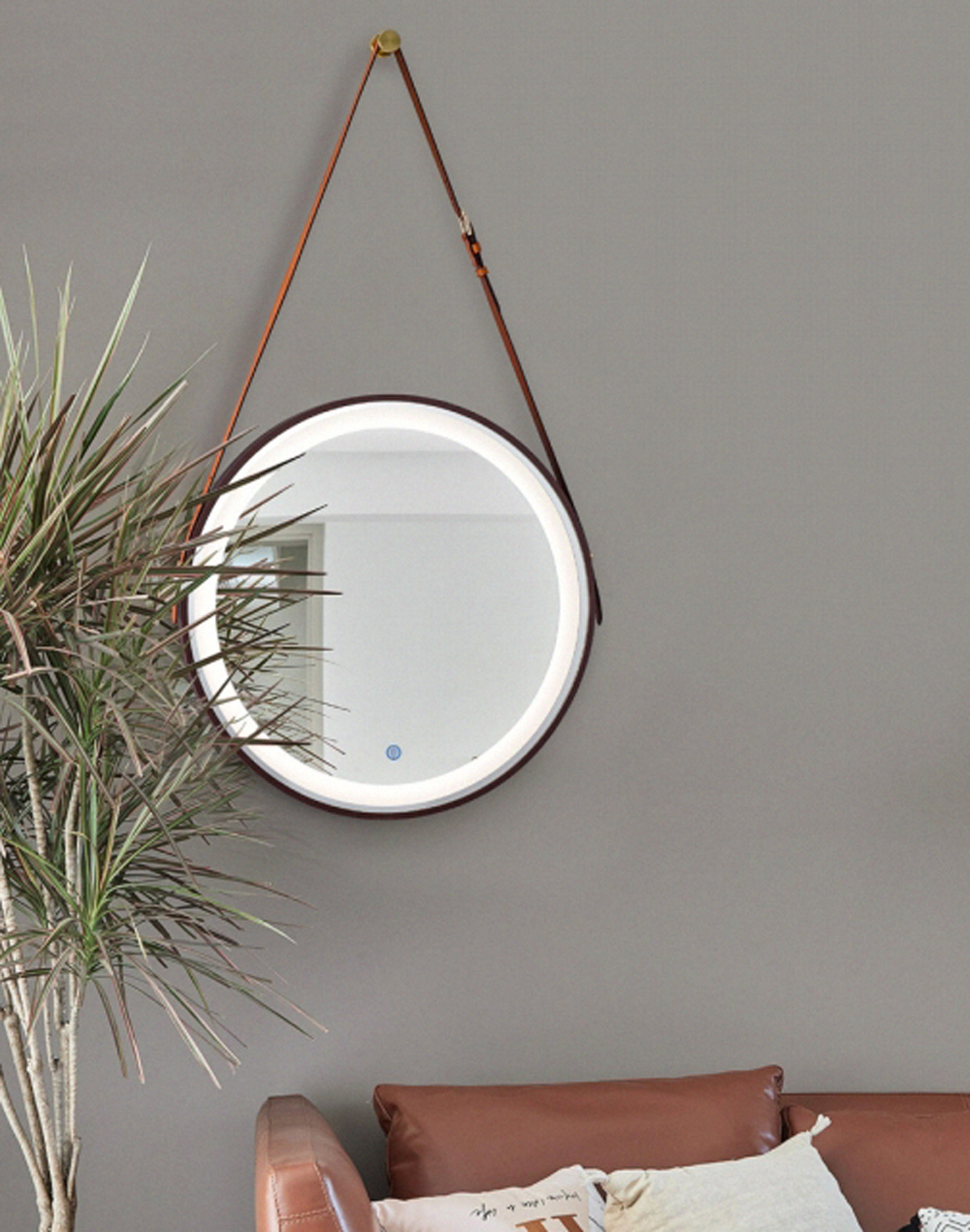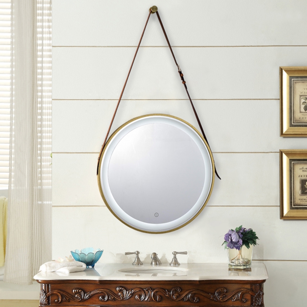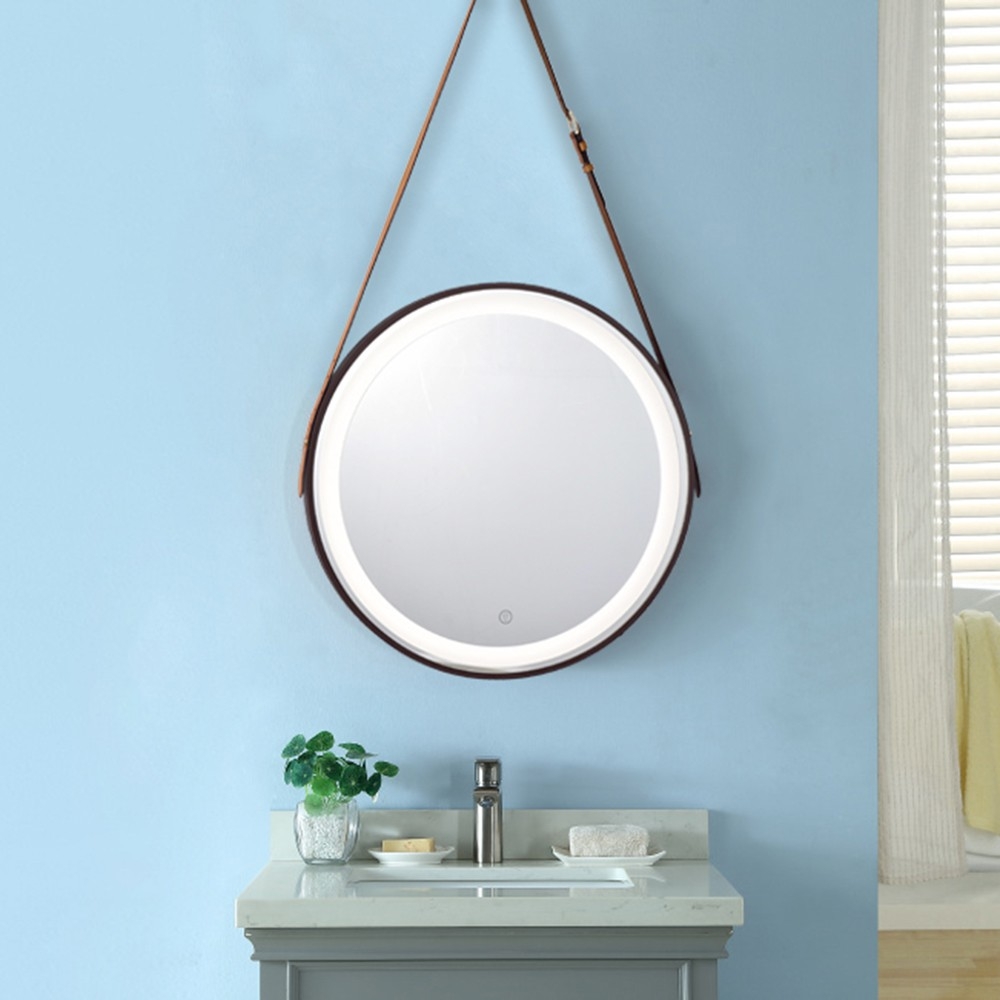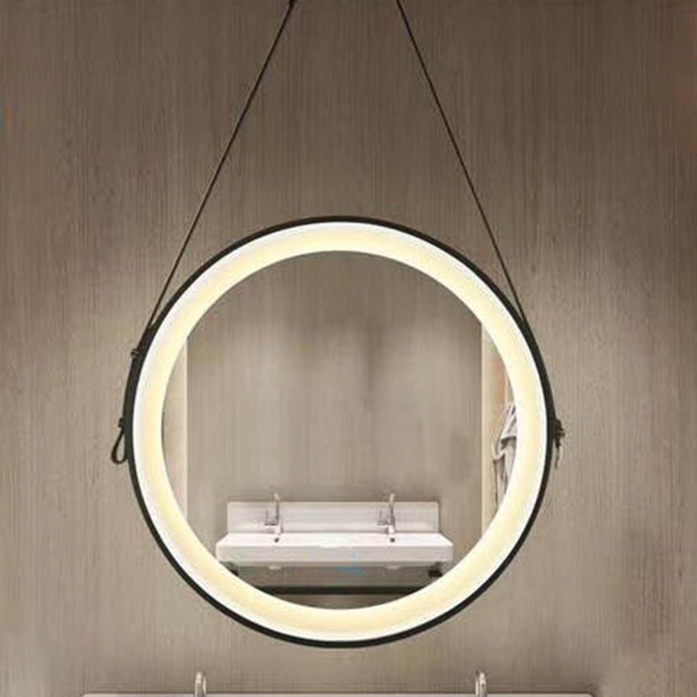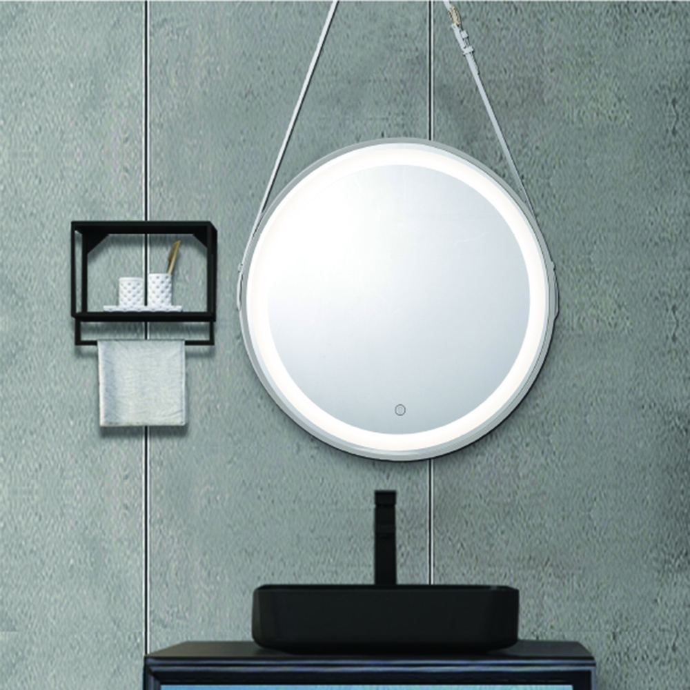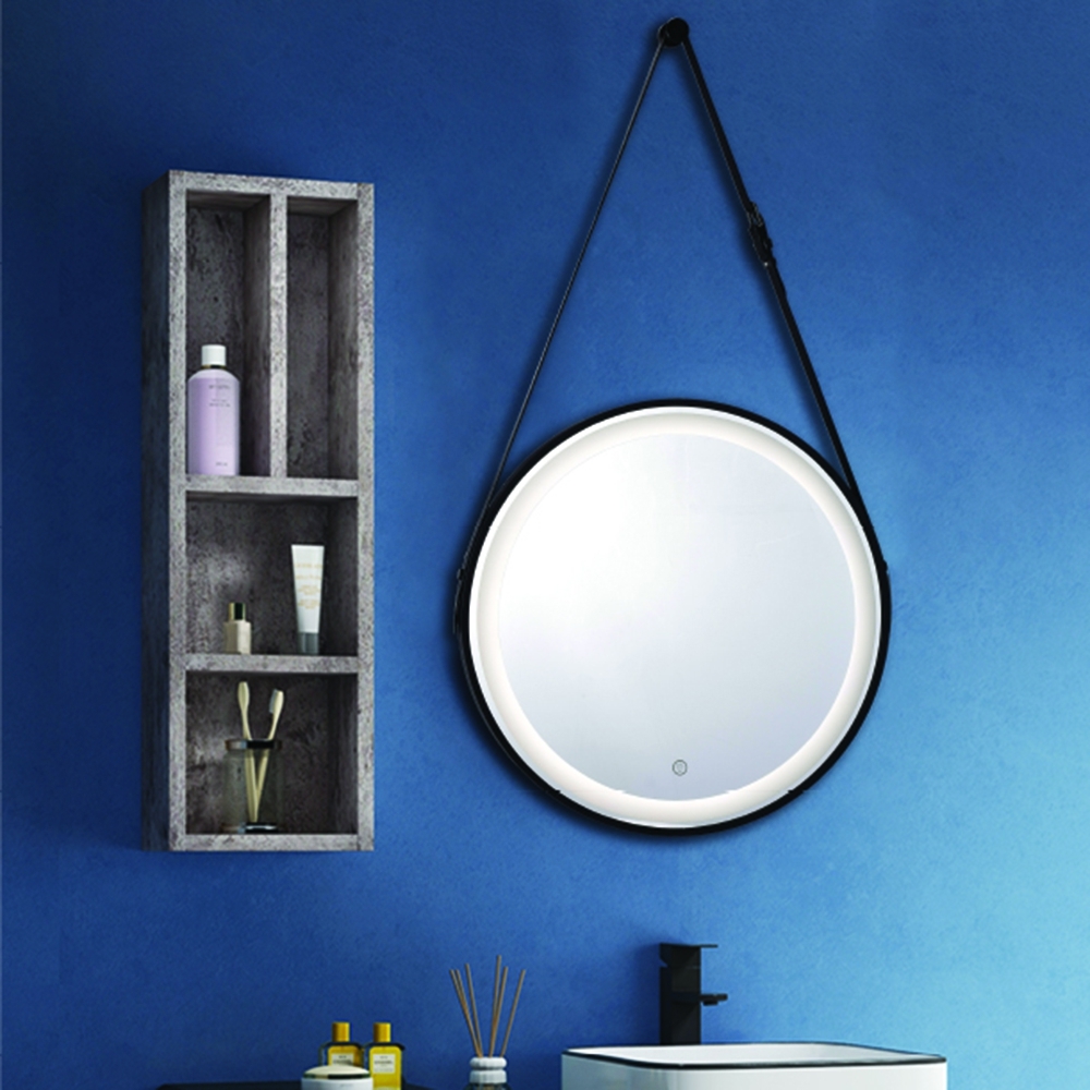 【H&R安室家】 里昂皮帶 智能LED發光觸控燈鏡(掛鏡/浴鏡/化妝鏡/鏡子) ZA0200(多色任選)