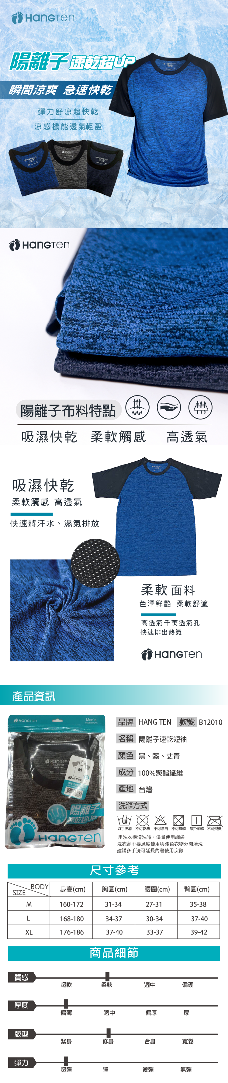 Hangten 陽離子速乾短袖衫-L(顏色隨機出貨)