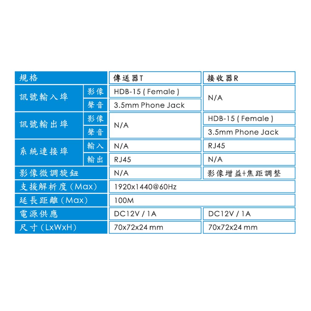 昌運監視器 HANWELL MBS-100E VGA+Audio 訊號 CAT.5 延長器 ( 100M )