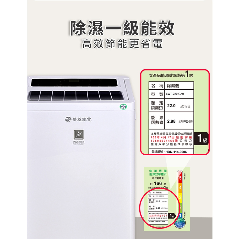 HAWRIN 華菱 27坪 一級節能 變頻清淨除濕機 EWT-220IGA0