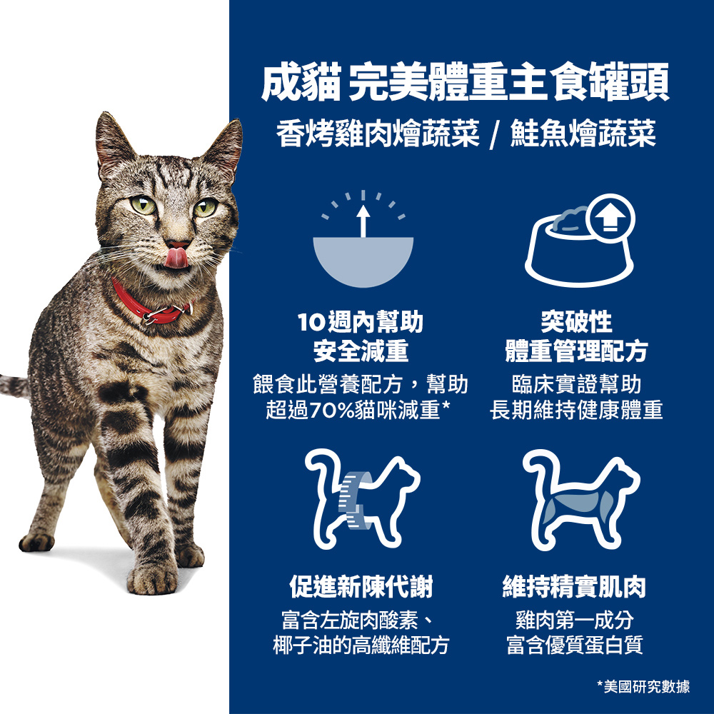 【Hills 希爾思】成貓 完美體重鮭魚燴蔬菜主食罐 2.9oz 82gX6罐/盒 (608491)