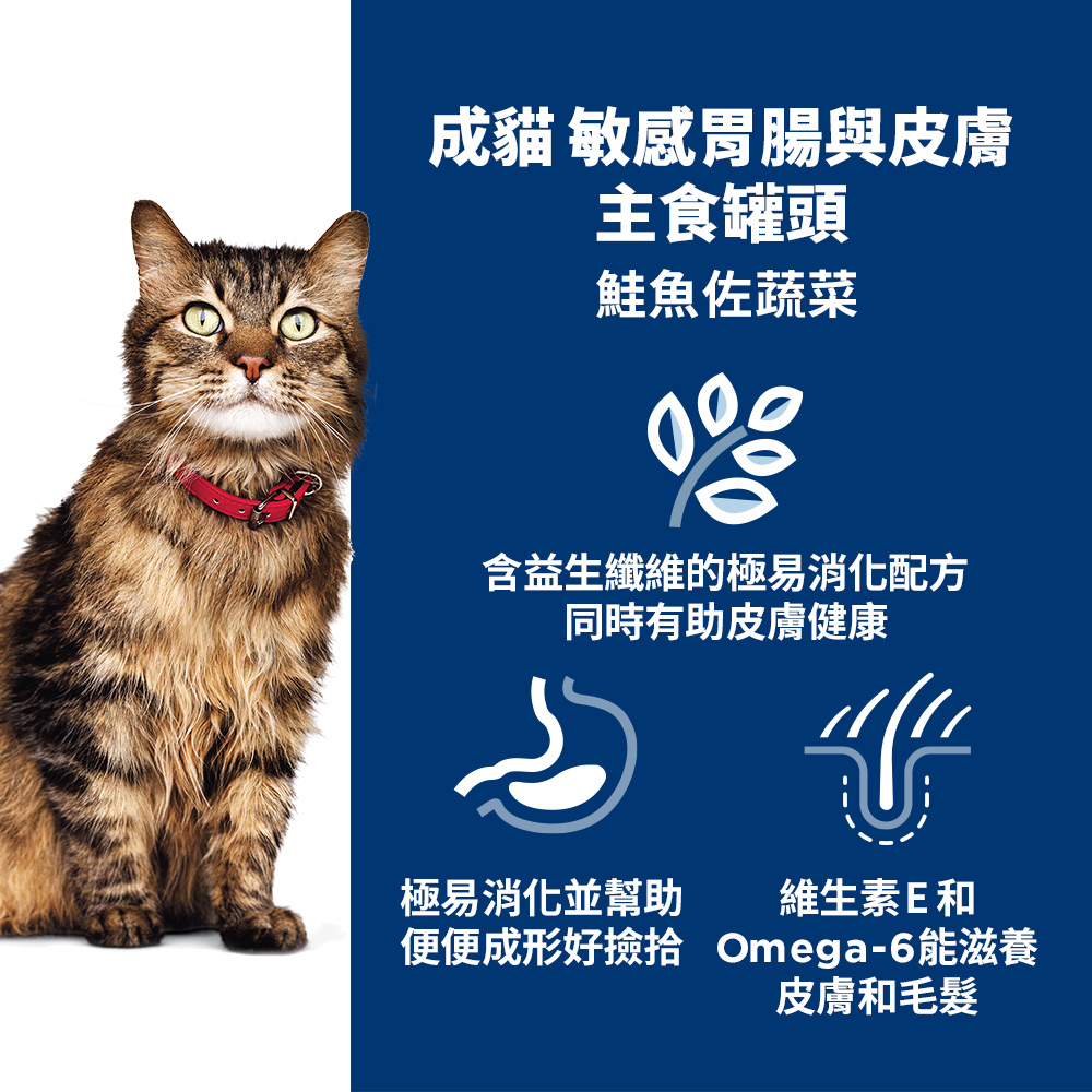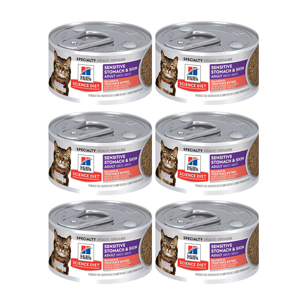 【Hills 希爾思】成貓 敏感胃腸與皮膚鮭魚佐蔬菜主食罐 2.9oz 82gX6罐/盒 (608608)