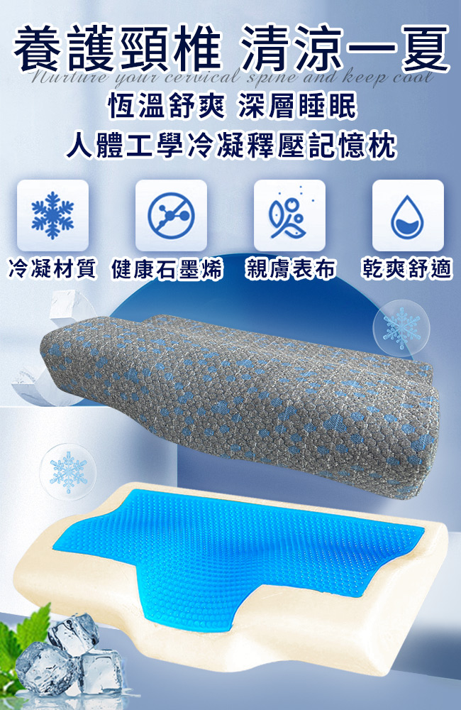 【Hilton 希爾頓】沉穩灰石墨烯蝶型冷凝釋壓記憶枕(枕頭/冷凝枕/記憶枕/護頸枕)(B0112)