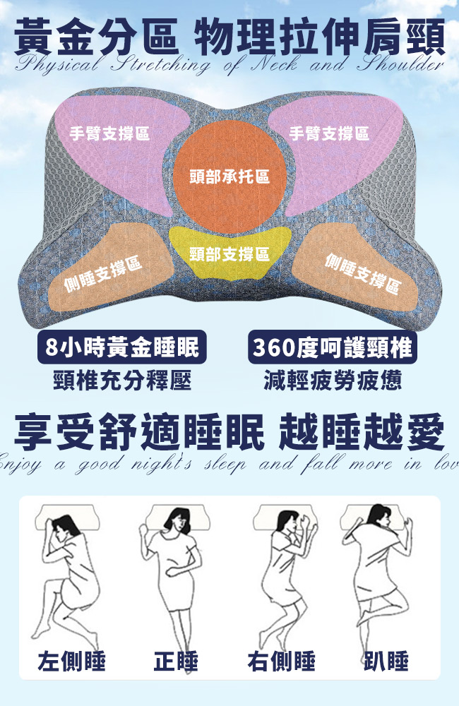 ◆黃金分區功能,人體工學三點支撐,360度物理拉伸,體驗沉睡睡眠