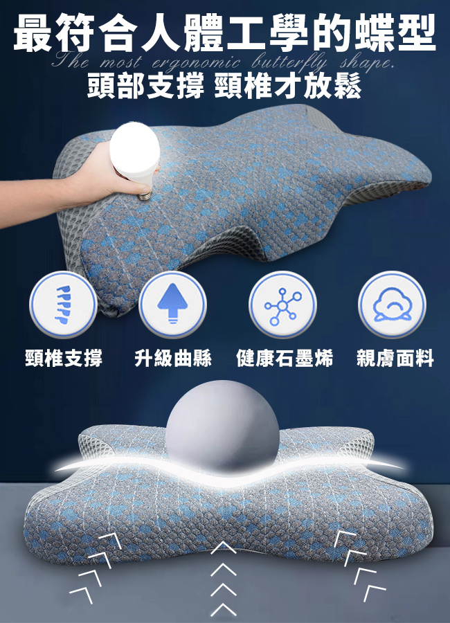 【Hilton 希爾頓】8S支撐超導石墨烯回彈記憶枕(枕頭/蝶型枕/護頸枕/記憶枕)(P8001)