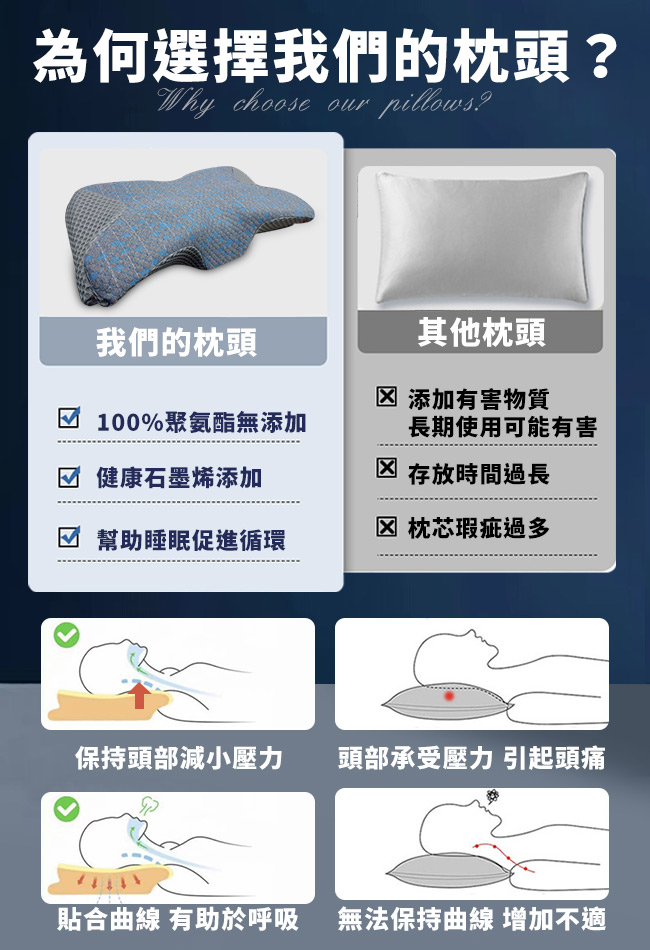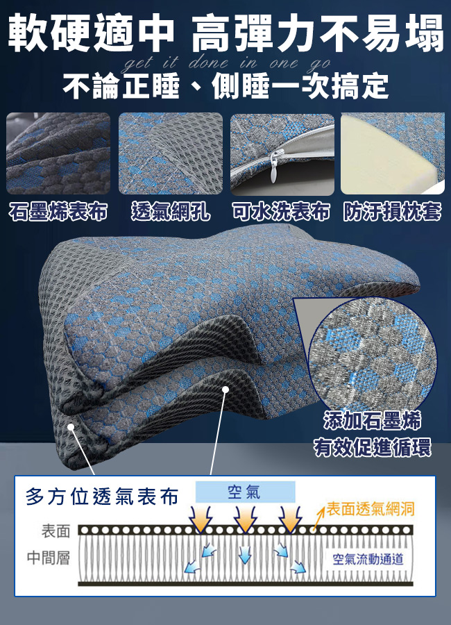 ◆特殊設計穩定各種睡姿,完整支撐,改善打呼狀況!