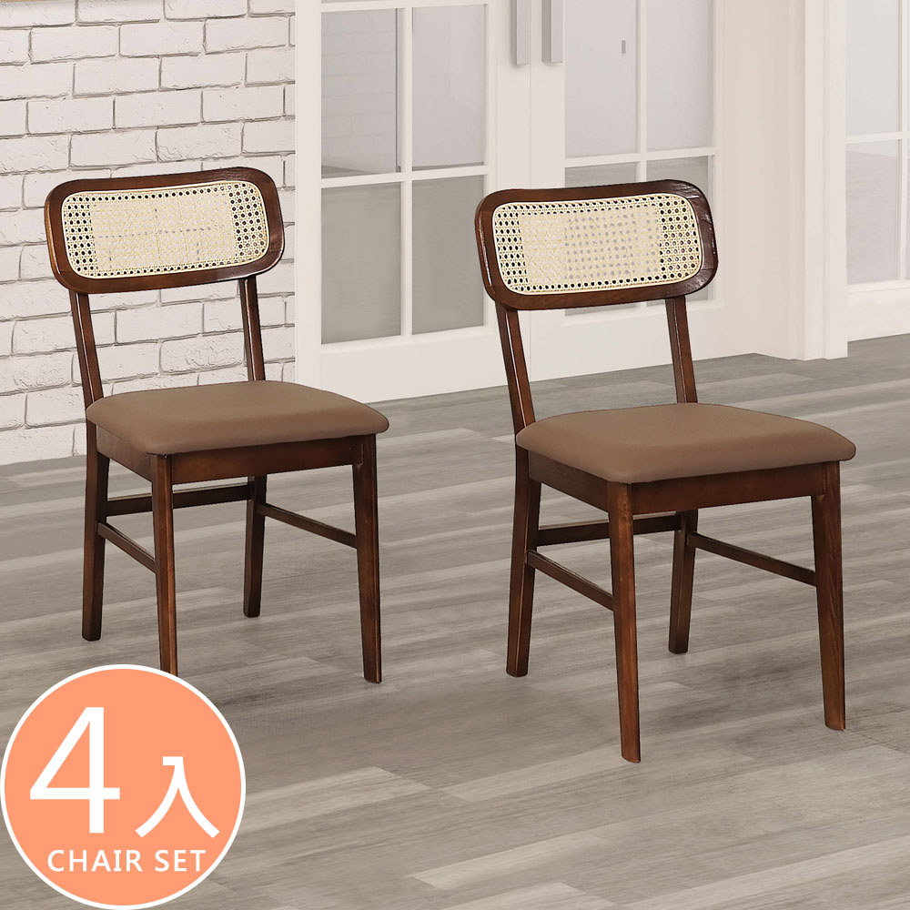 【Homelike】喜家居編織風格餐椅-4入組(胡桃色)(2410)