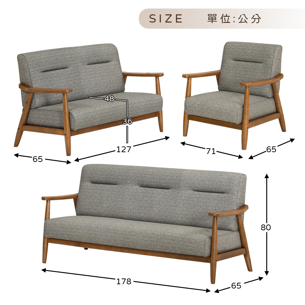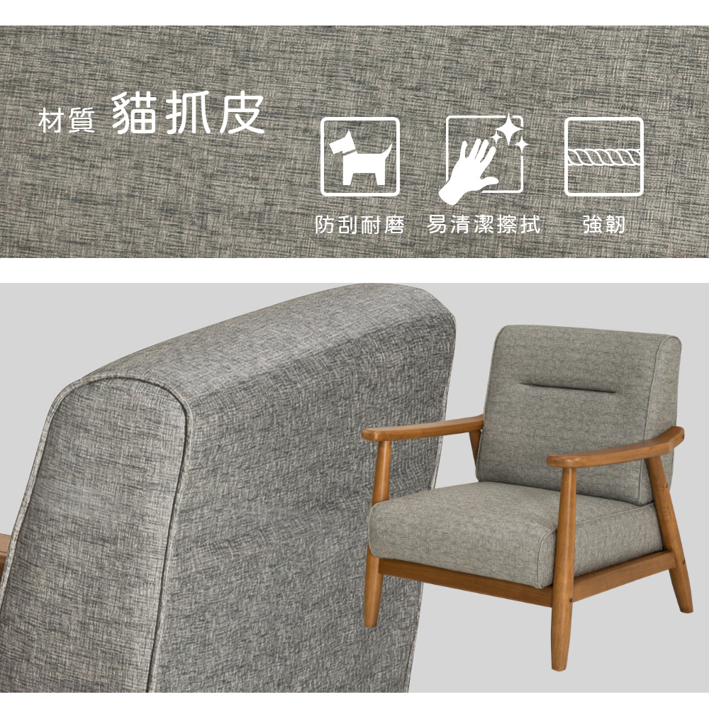 ◆耐刮、耐磨的貓抓皮材質◆實木材質框架,穩固耐用◆大小茶几含玻璃,易清理◆厚實舒適的泡棉坐墊◆免組裝,專人配送定位整體配件:單人座 + 雙人座 + 三人座+大茶几+小茶几尺寸: 單人座 - 寬 71 x 深 65 x 高 80 cm 雙人座 - 寬 127 x 深 65 x 高 80 cm 三人座 - 寬 178 x 深 65 x 高 80 cm 大茶几 - 寬 120 x 深 60 x 高 47 cm 小茶几 - 寬 60 x 深 60 x 高 55 cm材質:貓抓皮、實木、高密度泡棉、玻璃顏色:鐵灰色產地:越南誤差值:因人工丈量,尺寸±5%內為正常範圍