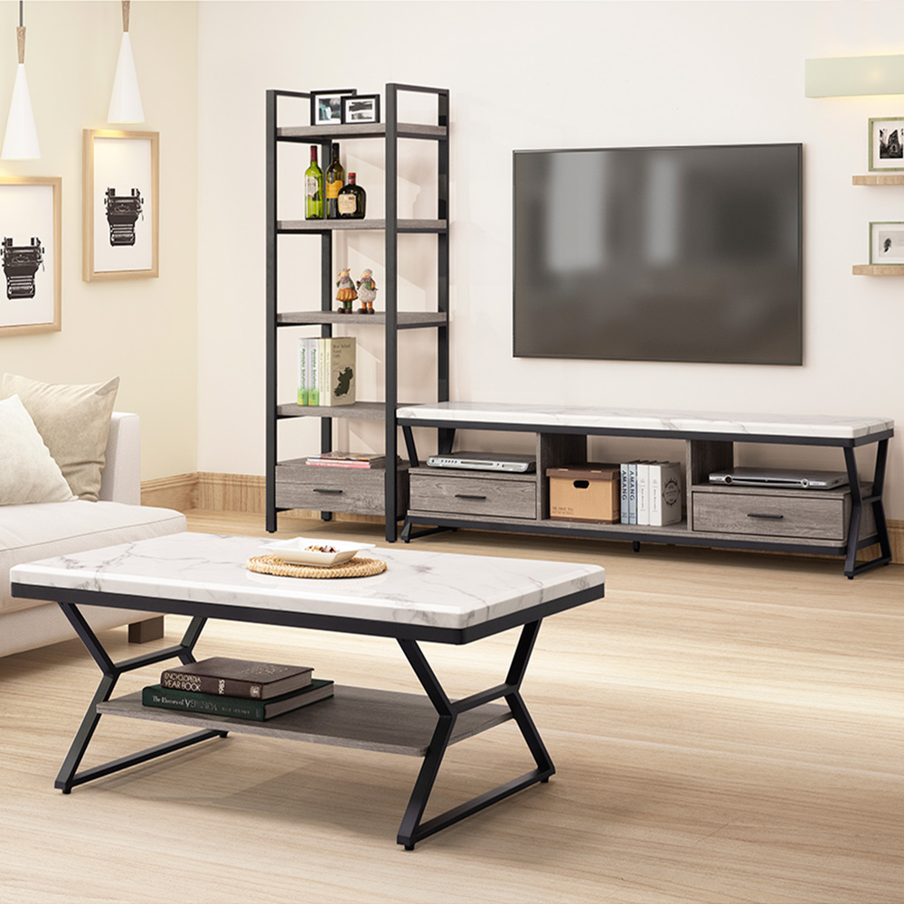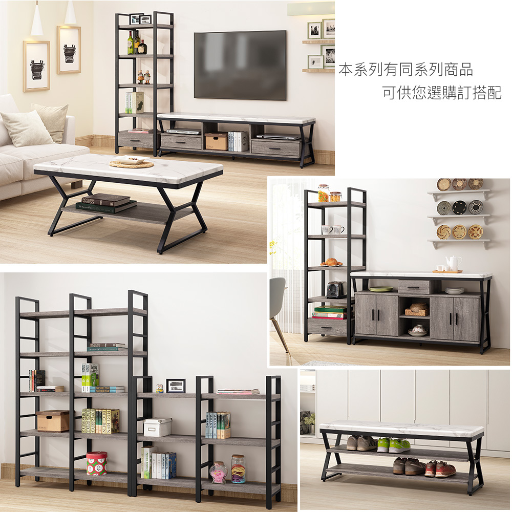 整體配件─3.6尺茶几+6尺電視櫃+書架 茶几尺寸:寬 110 x 深 60 x 高 48 公分 電視櫃尺寸:寬 180 x 深 40 x 高 51 公分 書架尺寸:寬 60 x 深 40 x 高 177 公分 材質:桌面MDF仿石紋(玻璃漆塗料)、高級木心板、高碳鋼管 顏色:灰橡色 產地:台灣 誤差值:因人工丈量,尺寸±5%內為正常範圍