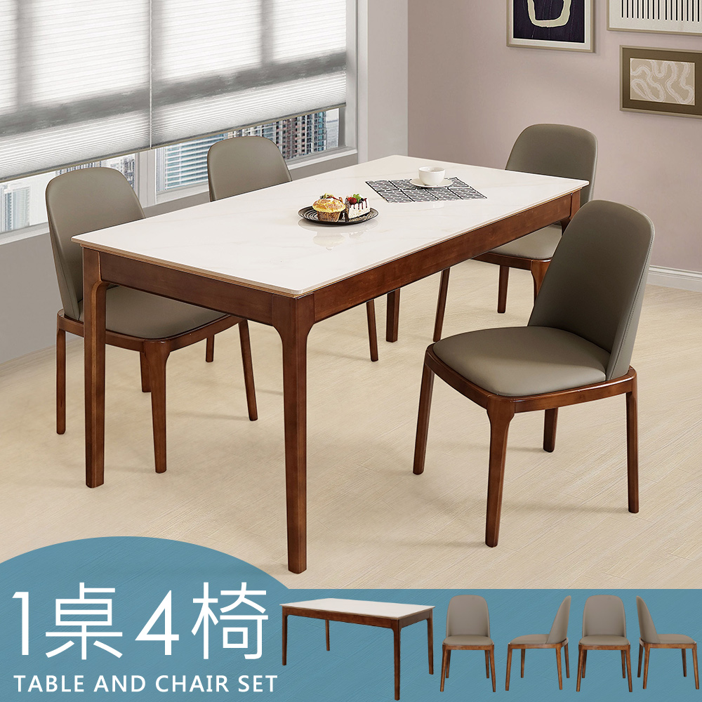 【Homelike】喜家居岩板餐桌椅組(一桌四椅)-胡桃色(2420-24)