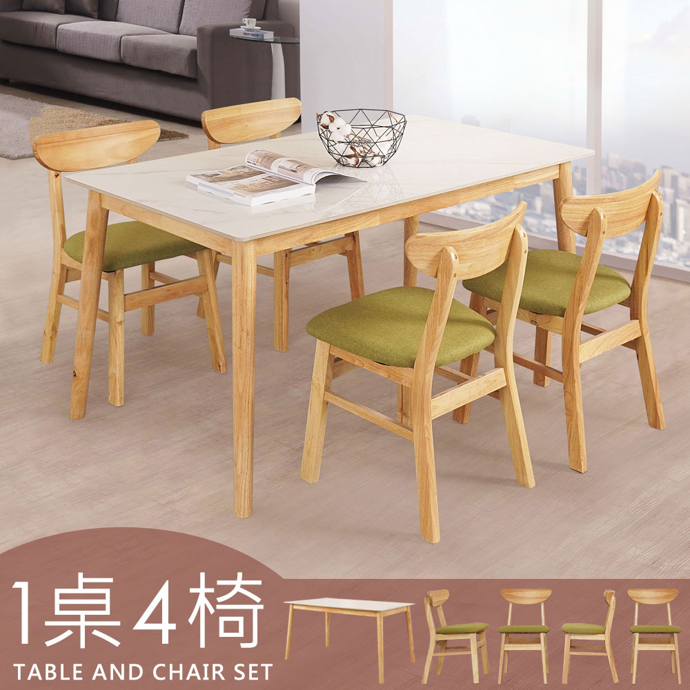【Homelike】喜家居岩板餐桌椅組(一桌四椅)-四綠椅(2363-22)