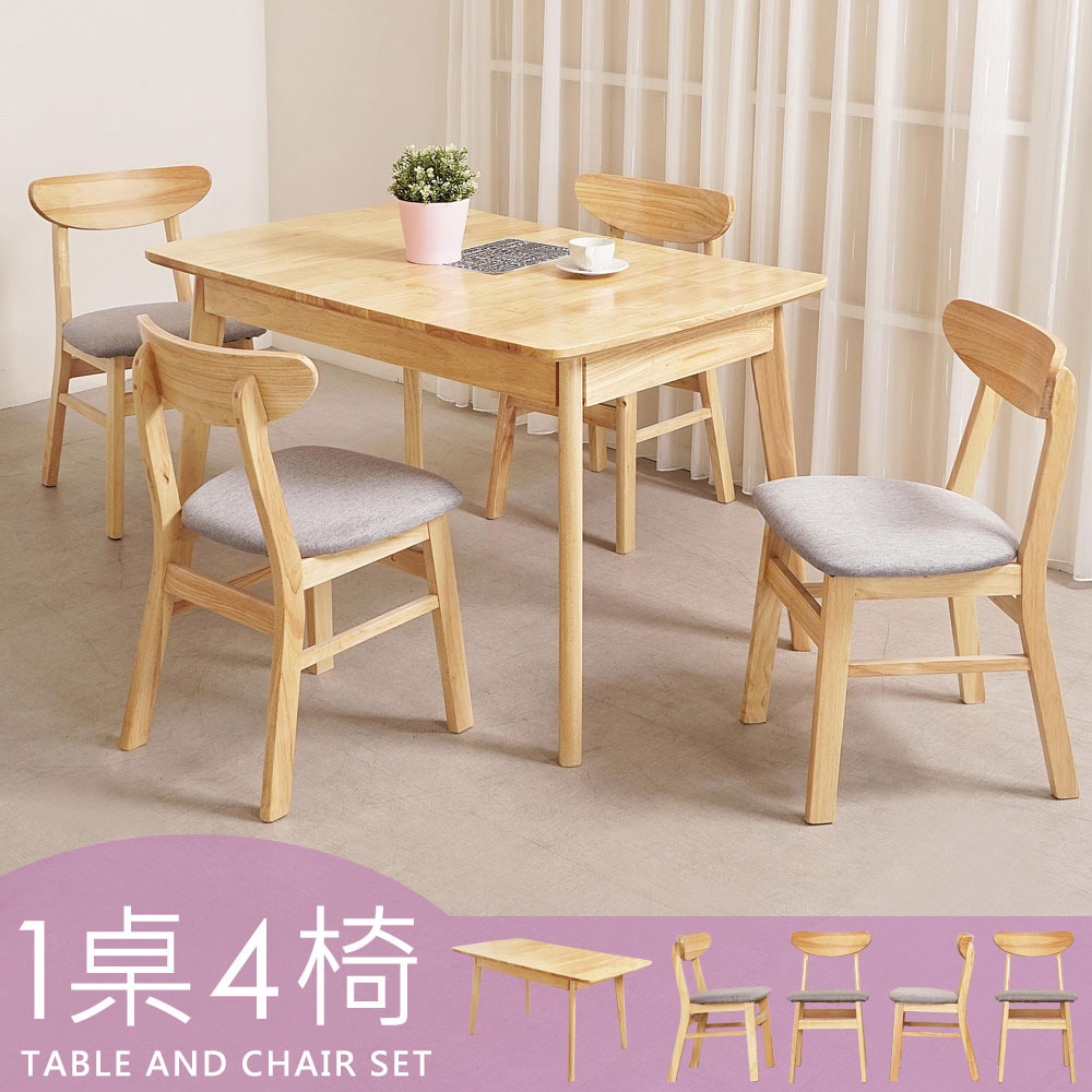 【Homelike】喜家居實木可延伸餐桌椅組(一桌四椅)-四灰椅(2314-22)