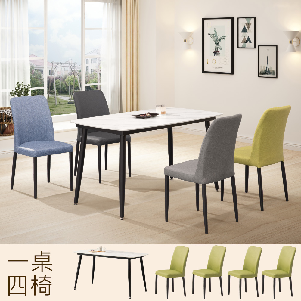 【Homelike】喜家居岩板餐桌椅組(一桌四椅)(2317)四綠椅