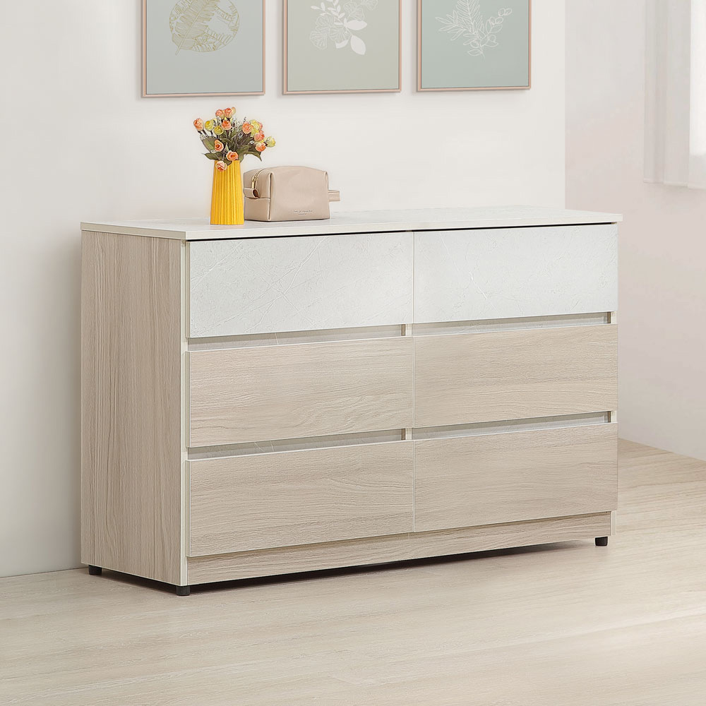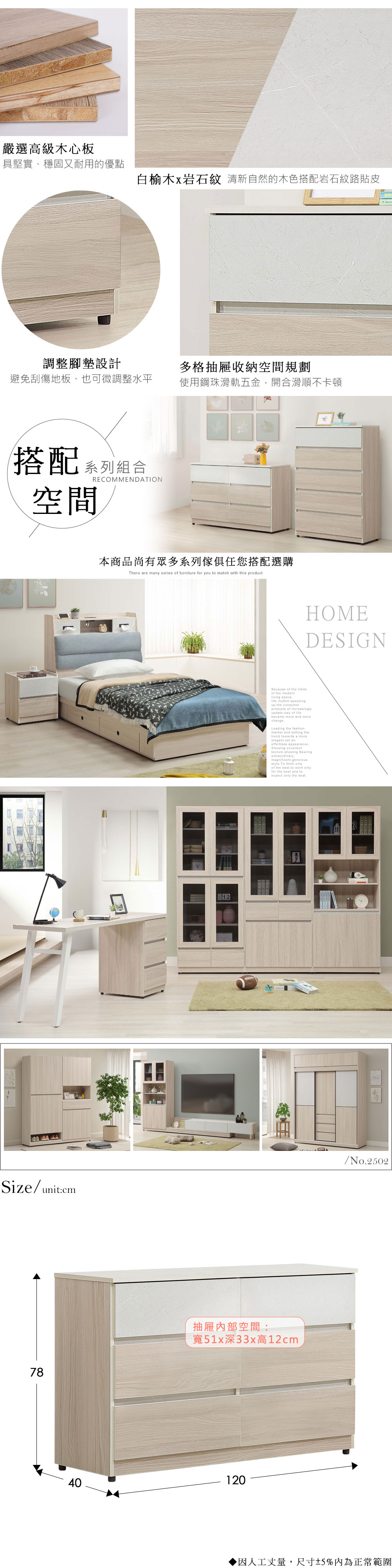 ◆嚴選高級木心板◆六抽屜設計,大容量收納◆使用鋼珠滑軌,開合滑順不卡頓◆清新的淺色系搭配自然木紋肌理◆免自行組裝,專人配送到府尺寸:寬 120 x 深 40 x 高 78 公分材質:高級木心板、美耐皿顏色:白榆木雙色產地:台灣誤差值:因人工丈量,尺寸±5%內為正常範圍