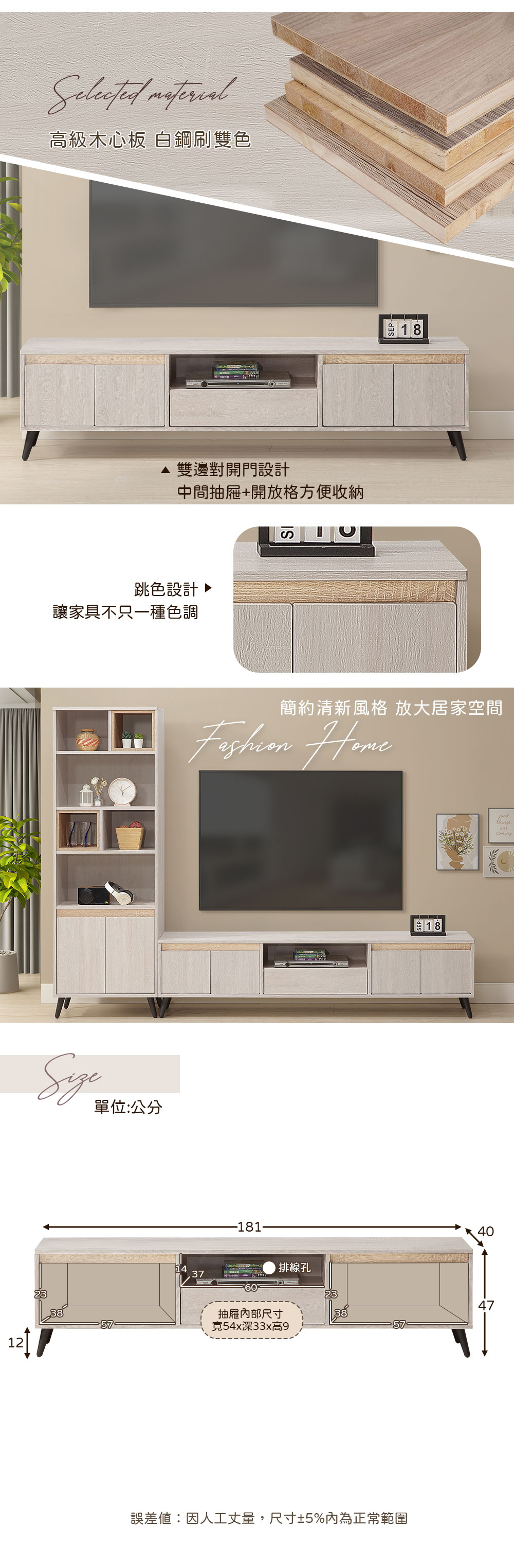 ◆雙門一抽屜設計,好收納◆跳色設計,讓家具不只一種色調◆簡約清新風格,放大居家空間◆專人配送,到府組裝尺寸:寬 181 x 深 40 x 高 47公分材質:高級木心板顏色:白鋼刷雙色產地:台灣誤差值:因人工丈量,尺寸±5%內為正常範圍