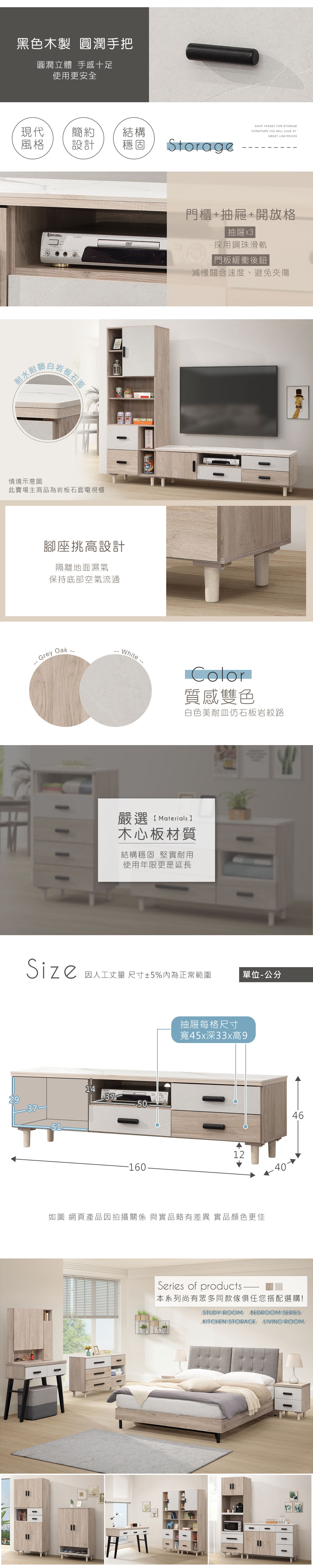 ◆黑色簡約,圓潤木製把手◆白岩板石面,耐水又耐髒◆門板緩衝後鈕,減少噪音◆免組裝,由專人配送到府◆韓系奶油暖色風格◆三抽屜+開放格+門片設計尺寸:寬 160 x 深 40 x 高 46 公分材質:高級木心板、美耐皿、岩板仿石面顏色:灰橡+白產地:台灣誤差值:因人工丈量,尺寸±5%內為正常範圍