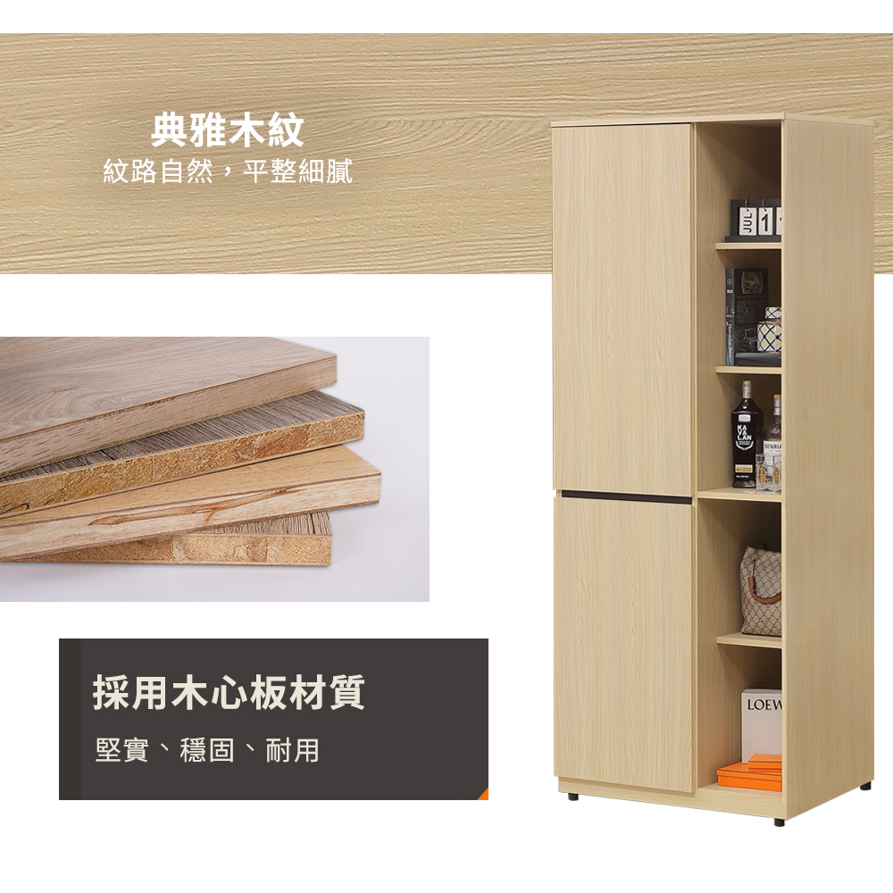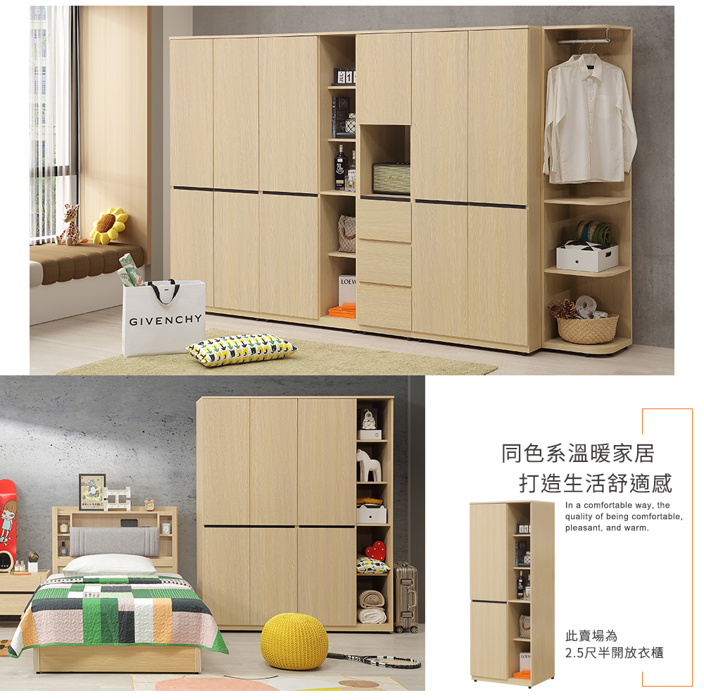 ◆木心板材質,堅實、穩固、耐用◆杉木色系,質感木紋視覺◆多格開放置物格,擺設拿取都方便◆雙吊桿,服飾好掛不易起皺◆門片使用緩衝五金,開合安全◆免組裝,專人配送到府尺寸:寬 76 x 深 57 x 高 190 公分材質:高級木心板顏色:杉木色產地:台灣誤差值:因人工丈量,尺寸±5%內為正常範圍