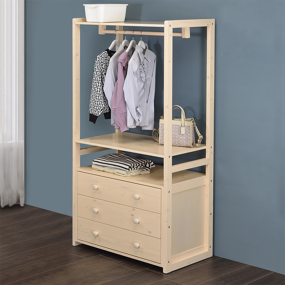 【Homelike】喜家居三抽開放實木衣櫃-象牙白(2259)